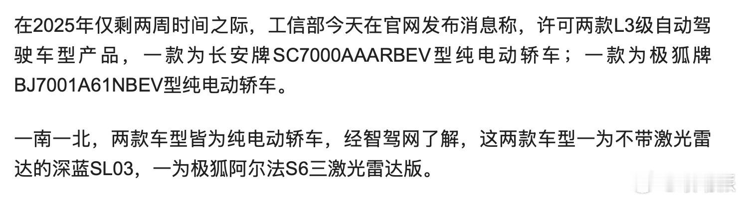 工信部近日正式批准了我国首批两款L3级有条件自动驾驶车型上路许可。两款车型分别为