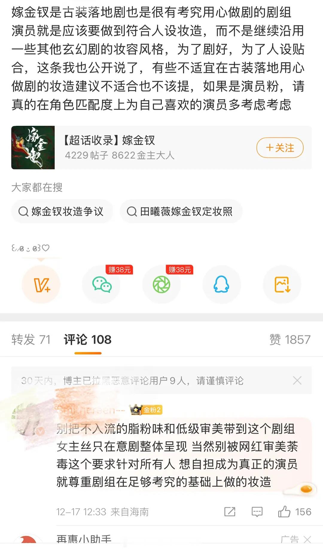 田曦薇粉丝向《嫁金钗》剧组就男主妆造提建议了