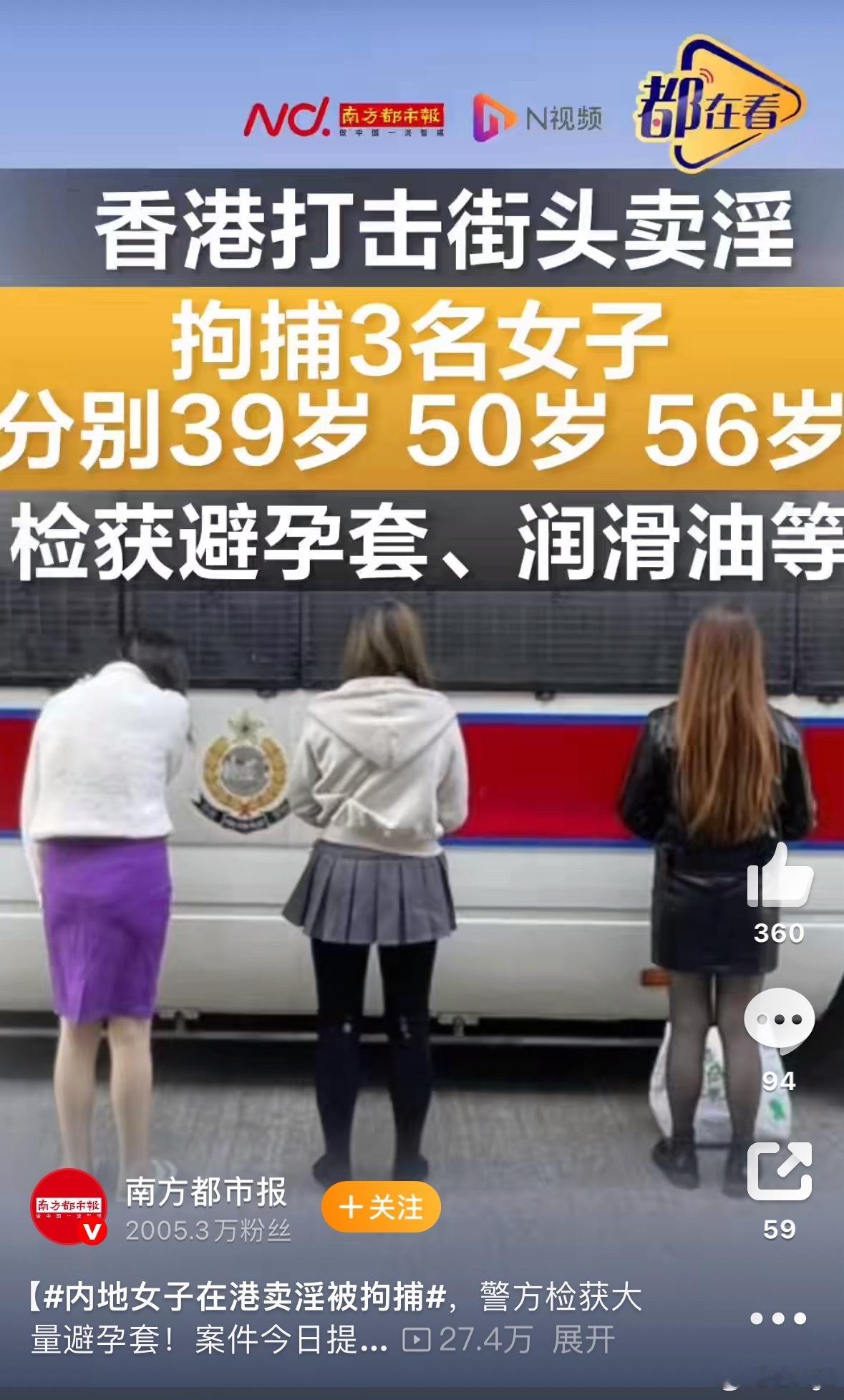 内地女子在港卖淫被拘捕分别是39岁,50岁,56岁。。。