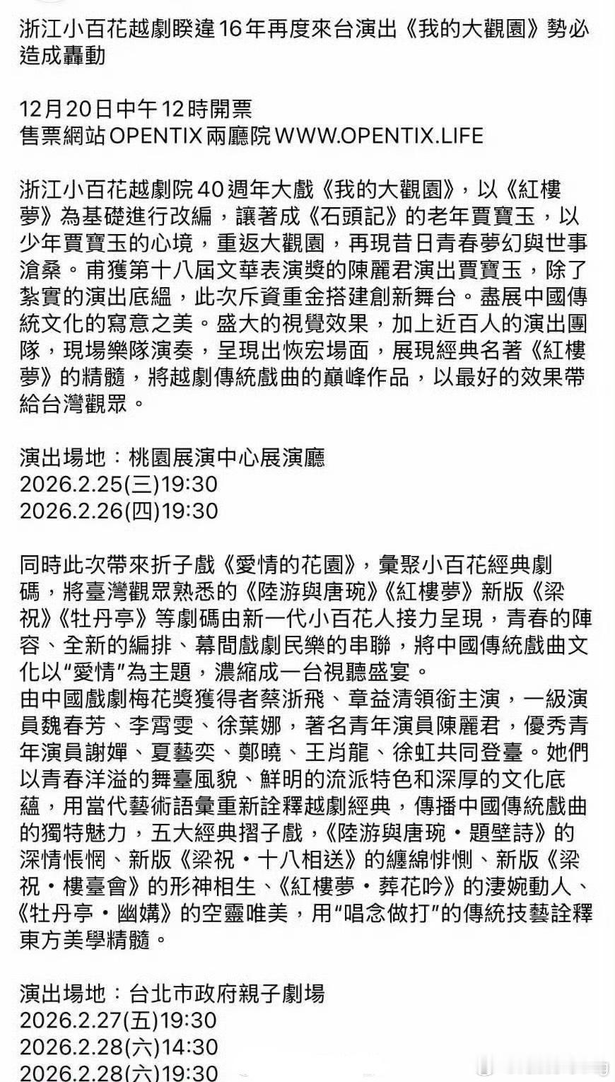 陈丽君携越剧《我的大观园》走进中国台湾弘扬传统戏曲文化~ 有效文化输出…陈丽君