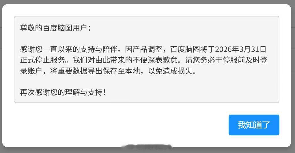 吓我一跳,我还以为百度地图呢,原来是百度脑图,明年 3 月 31 日停止服务,你们有用过吗?