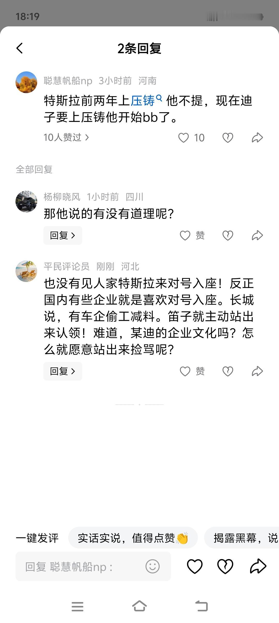 比亚迪还是好好的学习一下特斯拉吧! 特斯拉用了好多年,现在人家说一体压铸不好!也没有见特斯拉站出来反对!反倒是某些车企,直接就站出来捡这个骂。难道这个企业,有捡骂的爱好?记得当年,常常说有的车企偷工减料,第一个跳出来的,好像也是这个企业!我不知道心虚什么!