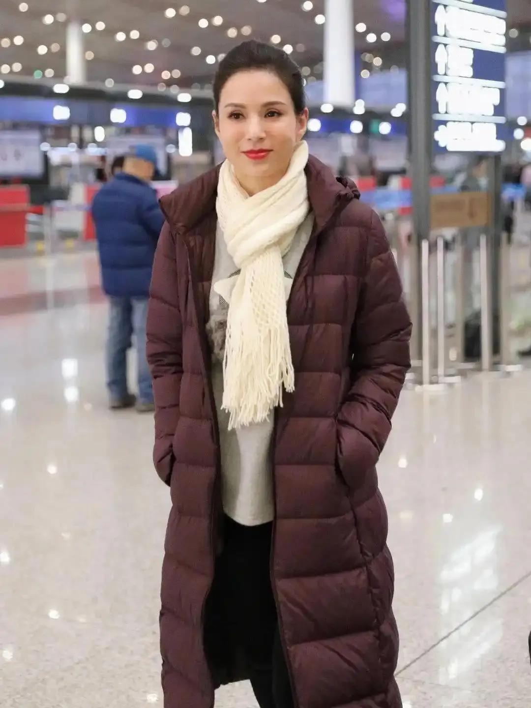 58岁李若彤棕红羽绒服穿搭,美翻了! 58岁李若彤的机场造型太圈粉!棕红色长款羽绒服配灰色卫衣,简约又高级,米白围巾点缀更添温柔,黑裤利落显瘦,保暖又时髦,这状态谁看了不夸一句冻龄女神! 李若彤 羽绒服穿搭