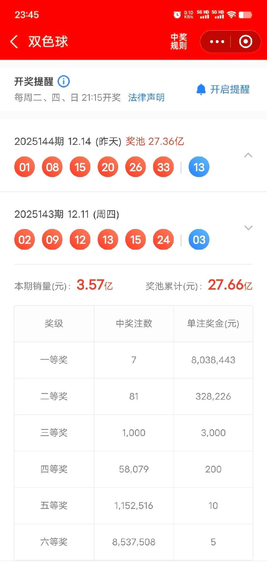这双色球奖池是真稳! 最近半年时间发现双色球的奖池很稳一直往上📈,这眼看要到年底了也该有大老出手了吧!
