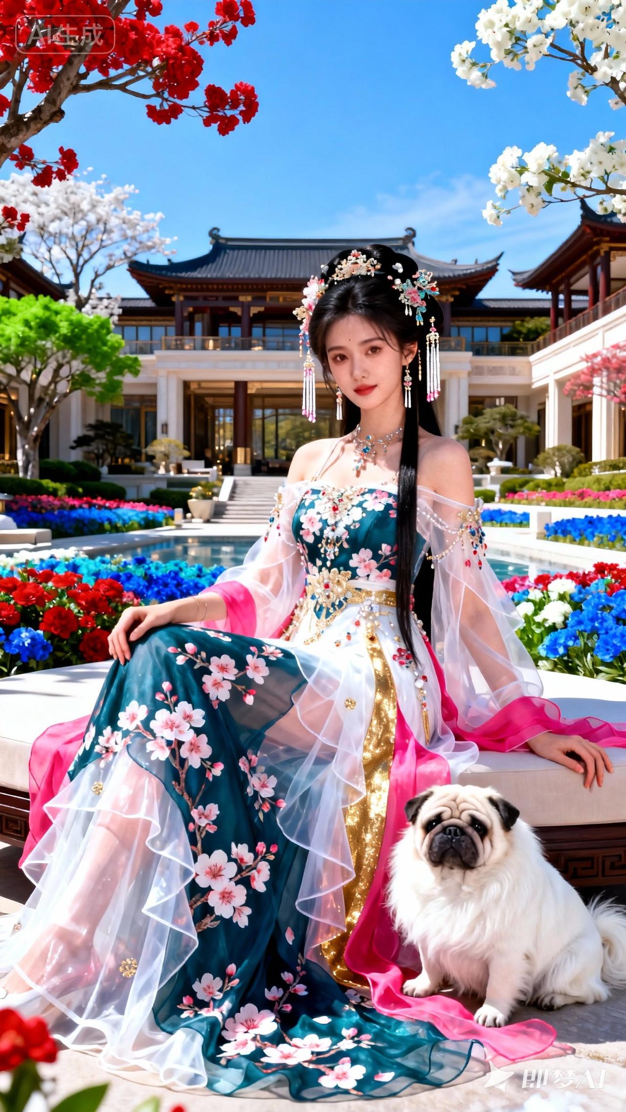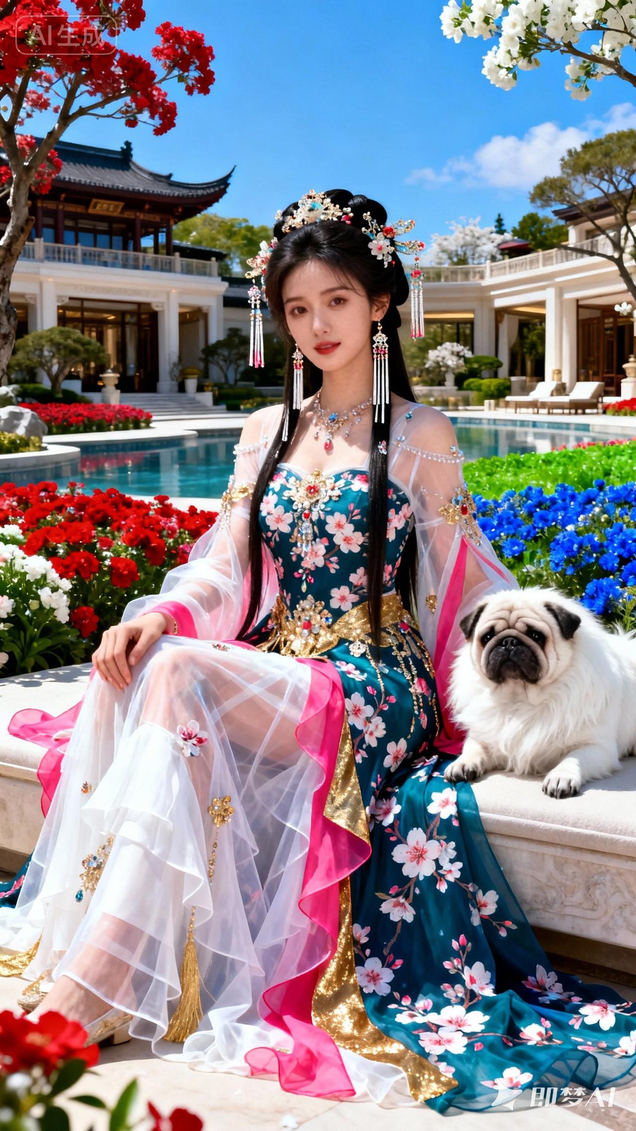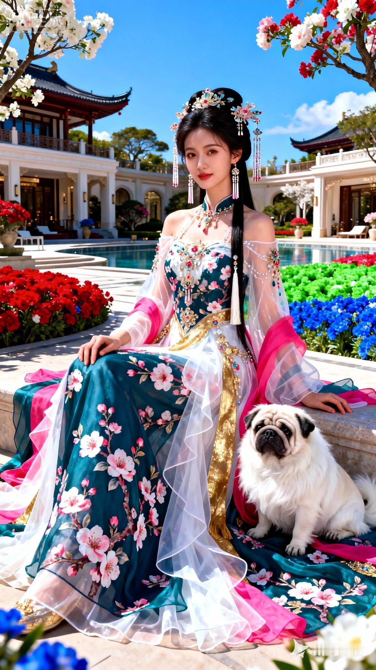 月光下的少女,花影婆娑,唯美如画