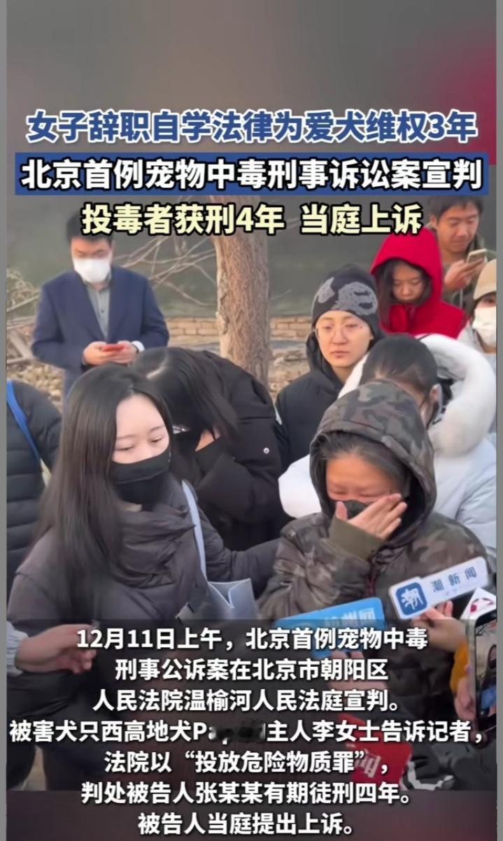 北京宠物投毒案判决:法理与情理的双重彰显 北京,一场跨越三年的维权之战落下锤音!65岁老汉张某因在小区投放含氟乙酸钠剧毒饵料,致9只宠物犬、2只流浪猫惨死,被以投放危险物质罪判处有期徒刑四年,同时需赔偿11名受害方损失,直至近乎倾家荡产。这起由邻里养宠矛盾引发的极端案件,判决的合情合理合法性,瞬间引爆全网热议。 事件的导火索,源于张某长期以来对小区宠物的积怨。据小区居民透露,张某住处紧邻单元门,常有业主遛狗时不牵绳,宠物粪便随意遗留,甚至有大型犬深夜吠叫,严重影响他的正常生活。张某曾多次向物业、社区投诉,但问题始终未能得到彻底解决。恼羞成怒的他,竟动了歪心思——网购国家明令禁止的剧毒物质氟乙酸钠,混合火腿肠后,偷偷投放在小区绿化带、儿童游乐区周边等公共区域。 短短半月内,接连有宠物犬误食后口吐白沫、抽搐死亡,其中就包括那位主人视若家人的13岁老狗。痛失爱犬的主人悲愤交加,毅然辞去工作,一头扎进法律典籍里,潜心钻研相关法条,誓要为毛孩子讨回公道。他不仅搜集到张某投毒的监控证据,还联系到另外8名宠物狗主人、2名长期投喂流浪猫的爱心人士,共同提起刑事附带民事诉讼。 从法律层面看,判决完全于法有据。氟乙酸钠属剧毒违禁品,几十毫克即可致命,张某在人员密集的公共区域投毒,不仅残害宠物,更对居民人身安全构成重大威胁,其行为已构成投放危险物质罪。法院最终量刑高于检察院建议的三年,正是考虑到他多次投毒、态度恶劣、拒不悔改的情节,契合刑法“危害公共安全”的立法精神;民事赔偿则依据《民法典》对财产权的保护规定,弥补了受害方的经济与精神双重损失。 合情性上,判决回应了公众对生命权的珍视。网友力挺:“四年刑期一点不冤,公共安全不容挑衅,这是对无辜生命的告慰!”但争议声也从未停歇,有网友辩解:“犬只扰民是根源,四年判得太重了,要是宠主都文明养犬,何至于此?” 可矛盾再深,也绝非违法犯罪的借口。邻里纠纷本可通过合法途径化解,张某却选择用极端手段报复,最终只能自食恶果。此案的判决,既守住了法律底线,又彰显了情理温度,更给养宠人与邻里相处敲响警钟:文明边界,从来都是安全的第一道防线! 你觉得这起案件的判决是否契合你心中的公正标尺?评论区聊聊你的看法!宠物投毒案 北京投毒案