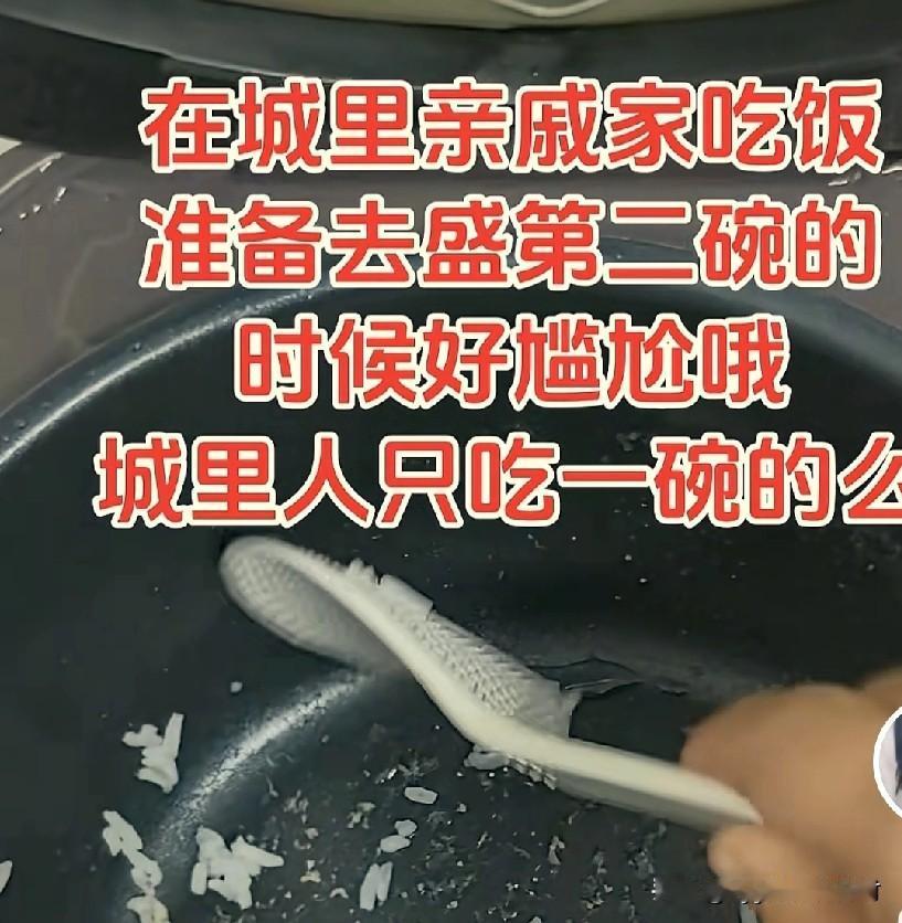 刚刚看到,有个朋友发视频称:“我去市里亲戚家吃饭,第一碗没吃饱准备盛第二碗的时候