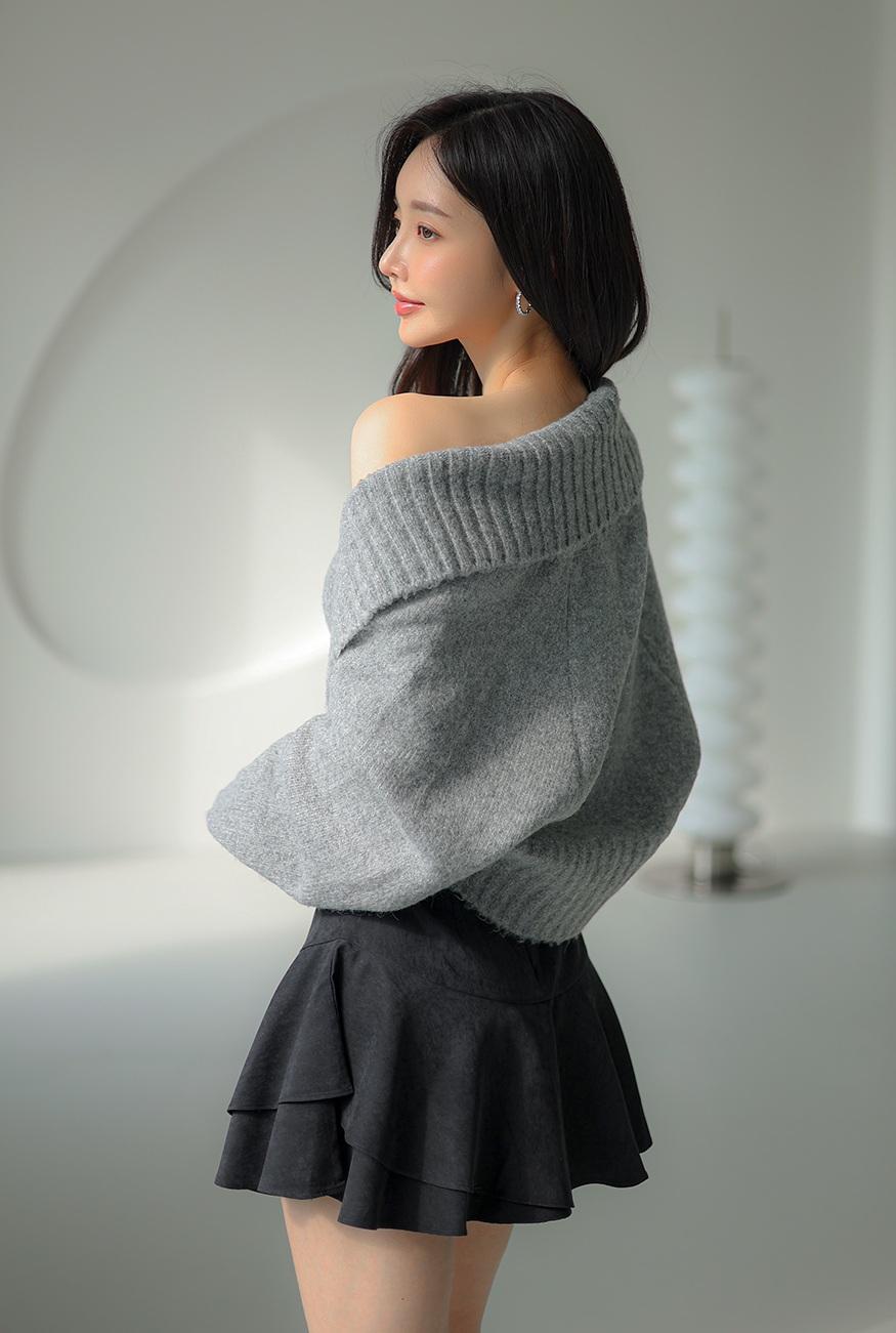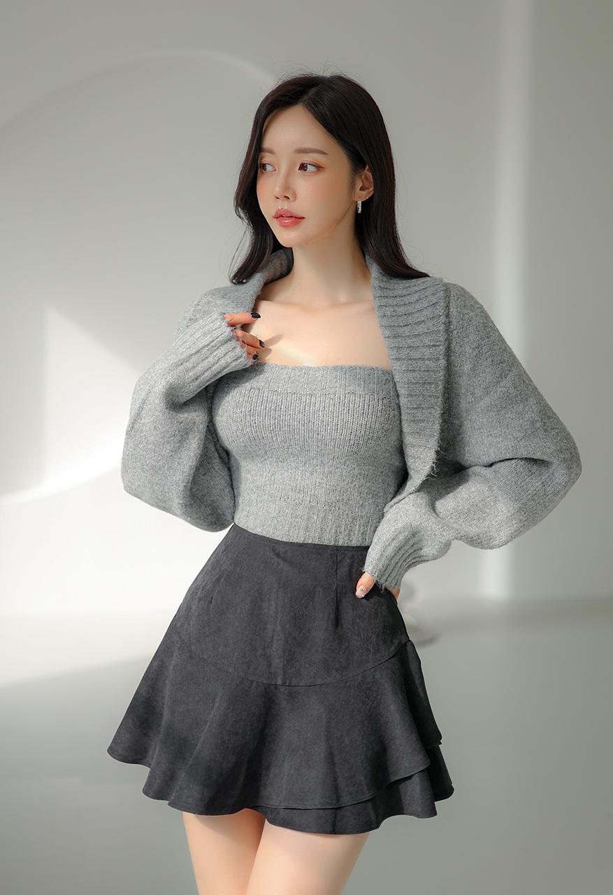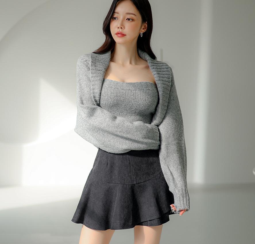 温柔少女风,灰色针织背心搭配黑色短裙,清新自然。