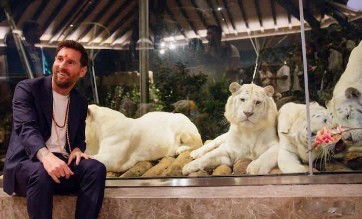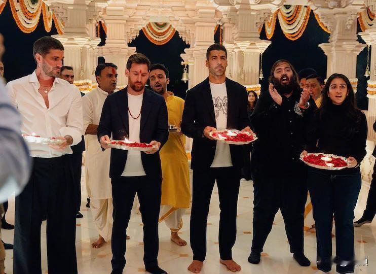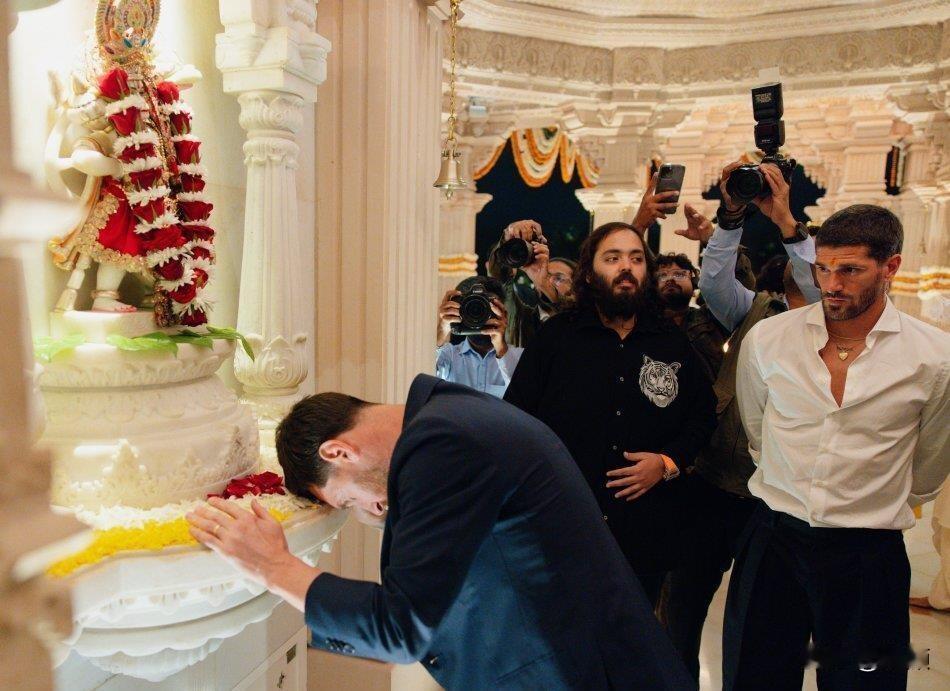 梅西近日受邀到访印度首富穆克什·安巴尼之子阿纳特的私人野生动物保护区“万塔拉”。 这座保护区绝非寻常动物园可比,园内栖息着逾两千只动物,白狮子、云豹等珍稀物种更是随处可见。在这里,梅西隔着玻璃与白狮子悠闲合影。为致敬这位足坛传奇,阿纳特特意为一只新生小狮子取名“莱昂内尔”。按照印度教传统,梅西的眉心被点上红点,这份祈福不仅饱含东道主的热情,更寄托了祈愿世界和平的美好期许。 陪同接待的阿纳特妻子拉迪卡,也一改往日珠光宝气的模样,换上简约的牛仔裤低调出镜。她身形丰腴的特点被媒体捕捉,更被打趣与体重近300斤的阿纳特堪称“天作之合”。 会面尾声的一个细节,掀起了外界热议。阿纳特与梅西相拥道别时,二人腕间的理查德·米勒名表格外吸睛——阿纳特的蓝宝石陀飞轮款市价约500万美元,梅西的限量款也价值120万美元。有细心媒体发现,梅西抵达印度时并未佩戴这块名表,因此不少人猜测,这枚价值百万的腕表,正是安巴尼家族赠予这位足坛巨星的见面礼。