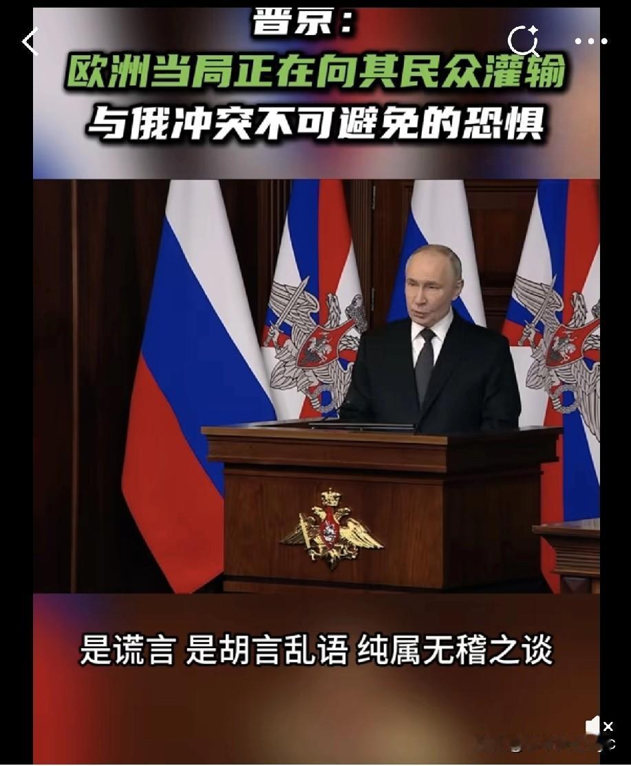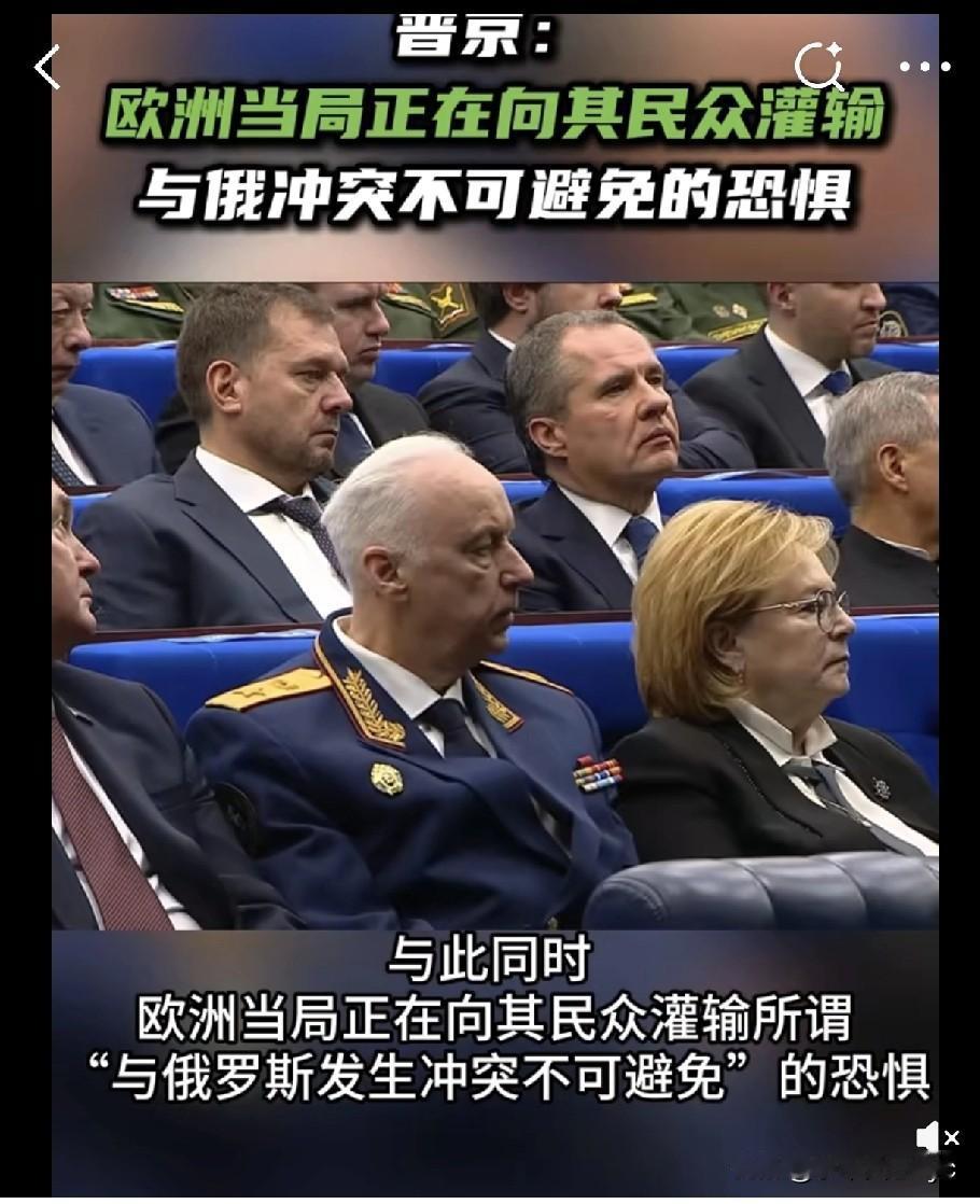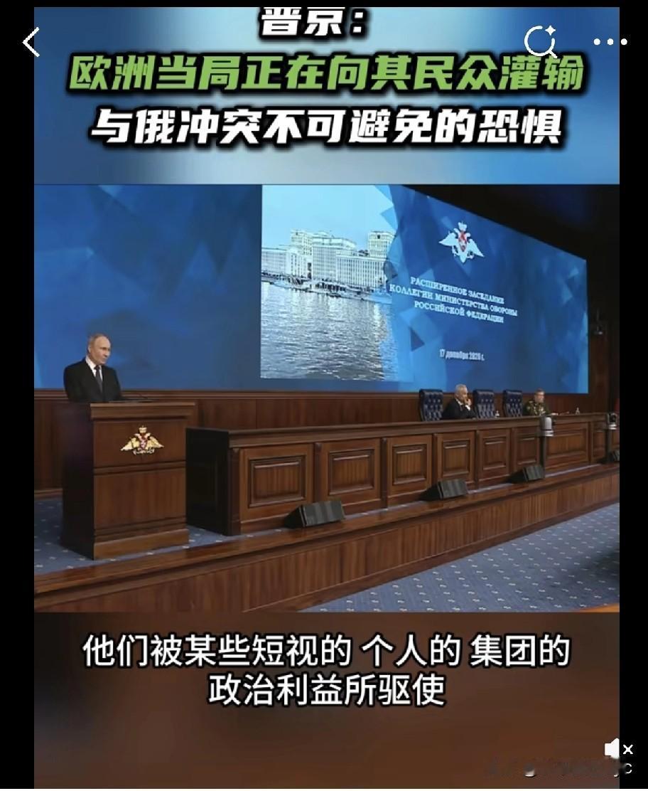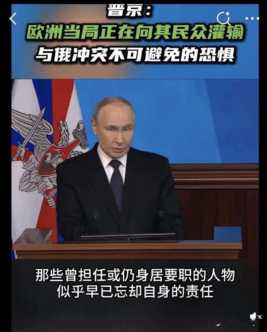据RT报道,12月17日,俄罗斯总统普京在俄国防部部务委员会扩大会议上表示,欧洲当局正在向其民众灌输一种所谓“与俄罗斯发生冲突不可避免”的恐惧,但这纯属谎言与无稽之谈。 普京指出,“欧洲当局正在向其民众灌输所谓‘与俄罗斯发生冲突不可避免’的恐惧,声称必须为大规模战争做准备。但我已经多次强调,这是谎言,是胡言乱语,纯属无稽之谈”。 普京在12月17日的声明,是他近期最直接否认与北约冲突意图的表态。 普京的这番言论是在“俄国防部部务委员会扩大会议”这一重要军事场合发表的。在同一讲话中,他传递了远比“否认冲突”更具威胁性的核心信息: 他表示,如果乌克兰及其西方支持者拒绝实质性对话,俄罗斯将通过军事手段实现其“历史领土的解放”。 他宣称,俄军已在整个前线掌握战略主动权,2025年已解放超300个居民点,并能够“增加进攻节奏”。 他宣布,“海燕”核动力巡航导弹和“波塞冬”无人潜航器等新型战略武器已列装,并将继续完善。 因此,普京的表态是一套“组合拳”:在展示强大军力和进攻决心的同时,表明战争渲染和紧张局势升级的责任在欧洲。 事实确实如此,欧洲正在利用乌克兰制造战争氛围,推动一场俄欧本来就不存在、而今风险剧增的俄欧军事冲突,逼迫俄罗斯接受不得不接受的现实。 普京的话题,揭穿了西方“虚构俄罗斯威胁”以掩盖自身治理危机、推动军事化的深层意图。 美国《华尔街日报》的报道认为,欧洲官员认为,只有让民众感知到切实威胁,才能赢得对增加军费、恢复征兵等政策的支持。北约秘书长也公开呼吁成员国转向“战时思维”。