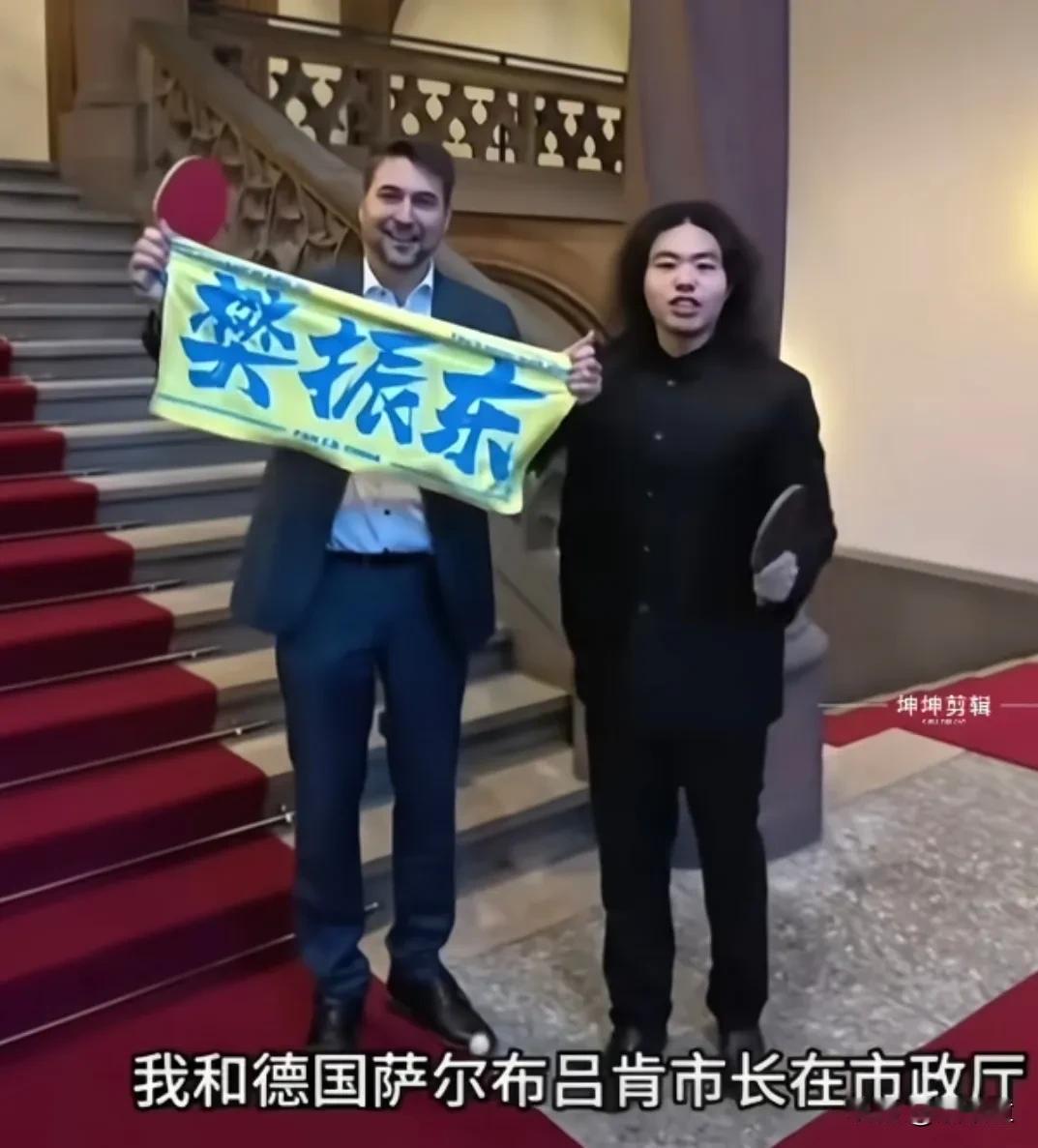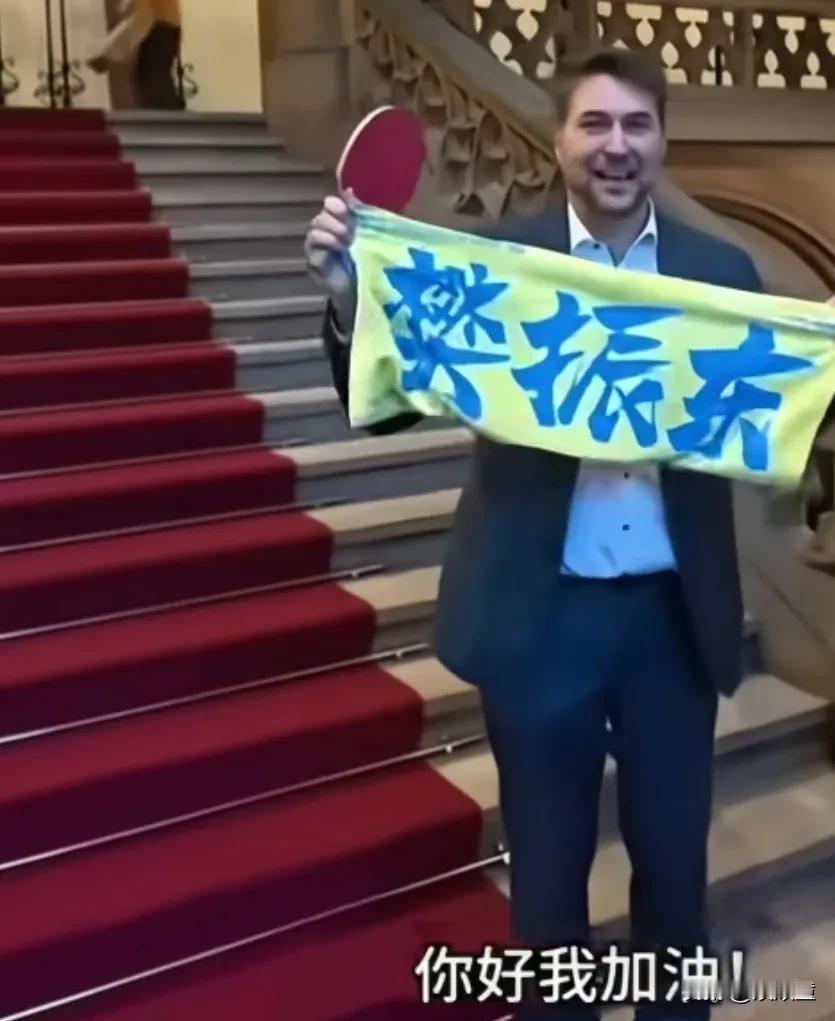 樊振东的排面不就来了! 小提琴家晒出与萨尔布吕肯市长,一起为樊振东加油的视频…… 视频中市长拿着樊振东的应援横幅以及樊振东经典的赛场定格,用有一些蹩脚的中文,喊出:樊振东加油… 这一瞬间,搞笑与感动共存,据悉市长接下来也会去观看萨尔布吕肯俱乐部的比赛,一睹樊振东赛场风采!
