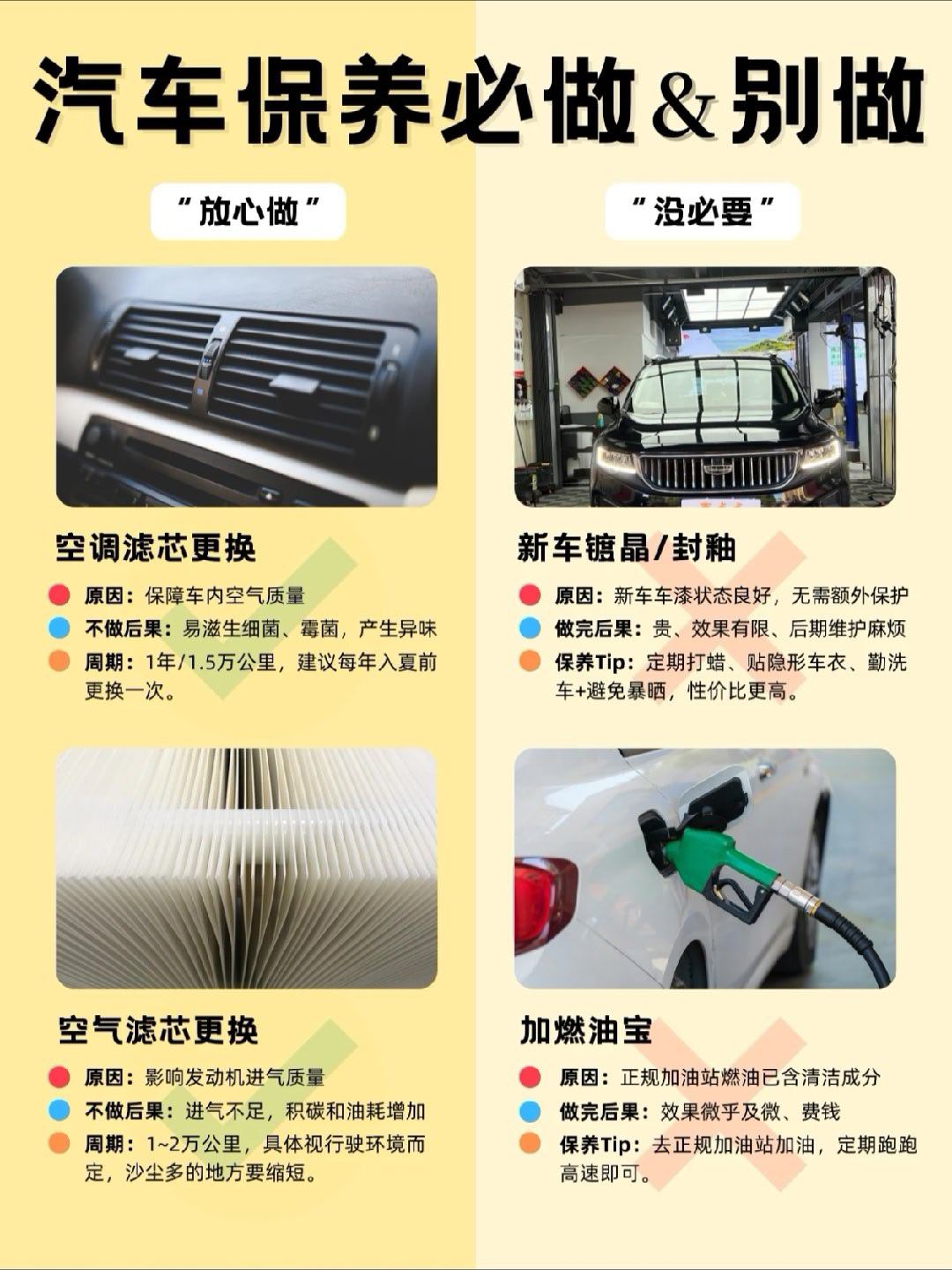 🚗车要不要保养?当然要!但问题是哪些必须做,哪些纯属坑钱?动不动清洗这个、养护那个听着好像不做车明天就要报废......保养的核心是按需维护而非越多越好哦~不要再被坑啦!✅防坑指南1️⃣以保养手册为准,尽量不要随意延长。2️⃣动力、异响等异常才是需要维修的信号。3️⃣清洗类项目单独收费,可选择性拒绝。4️⃣每次保养留存单据,避免重复。大v聊车汽车