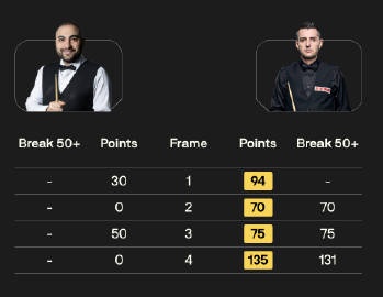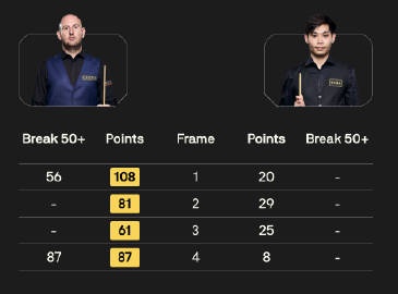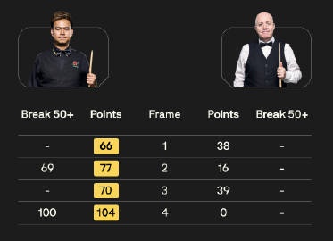 斯诺克苏格兰公开赛21点场次:希金斯0-4输球,塞尔比4-0晋级16强