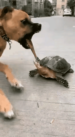 狗狗对主人新买回来的乌龟产生了浓厚的兴趣,它不时地用爪子拨弄拔弄乌龟的小脑壳,乌龟也识趣地把脑壳缩回龟壳里藏起来。狗狗大笑:黑不溜秋的还有伸缩性,它试了试自己的脖子,除了转弯怎么也缩不成一团。 我一定要学会这招,太好玩了,它讨好地用舌头舔着乌龟头:哥们,把你这绝招交给我好不好。我也想当一个缩头乌龟,不不不,缩头狗狗。 乌龟大怒,它最不喜欢别人说它是缩头乌龟,一口咬住狗狗的舌头:叫你骂,叫你骂。 狗狗痛得趴在地上大哭:饶了我吧龟爷爷,你不是缩头乌龟呜呜呜……