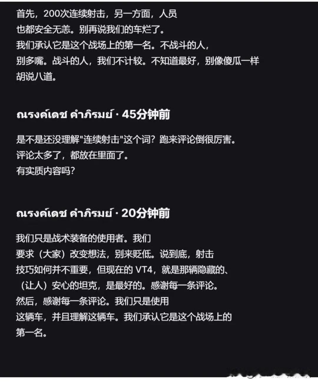 最近泰国VT - 4坦克炸膛的事儿闹得沸沸扬扬。外媒报道一辆泰国采购自中国的VT - 4坦克在泰柬边境开炮时炸膛,炮管被炸飞,观瞄、热成像系统受损。印媒、美媒等嘲讽中国制造靠不住。 但泰国士兵出来辟谣了,原来是他们把坦克当固定炮台,一天内站桩输出200多发炮弹。要知道,正常坦克作战打十几发就得转移,一般坦克炮管寿命400发左右,还不能连发,得冷却散热。这次VT - 4连打200发才炸膛,车里三人还都活着。这哪是质量问题,分明是被用到极限,反倒证明了它的可靠性,狠狠打了外媒的脸!
