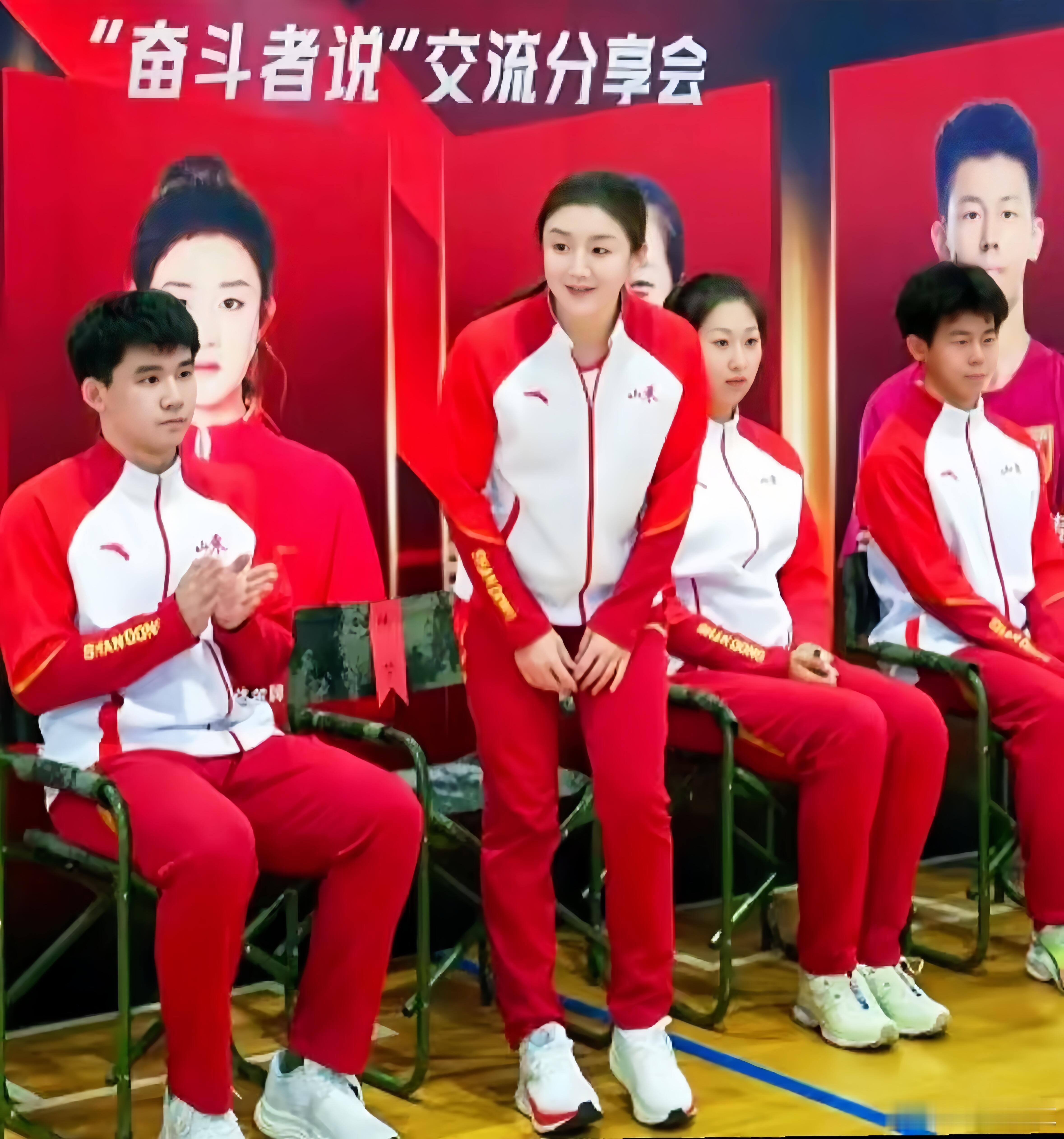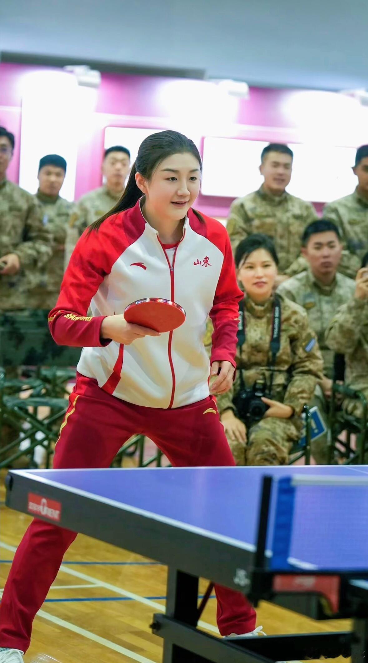 陈梦与部队官兵切磋球技陈梦和山东队去部队参加“奋斗者”交流会🏓几个人都笑的好温