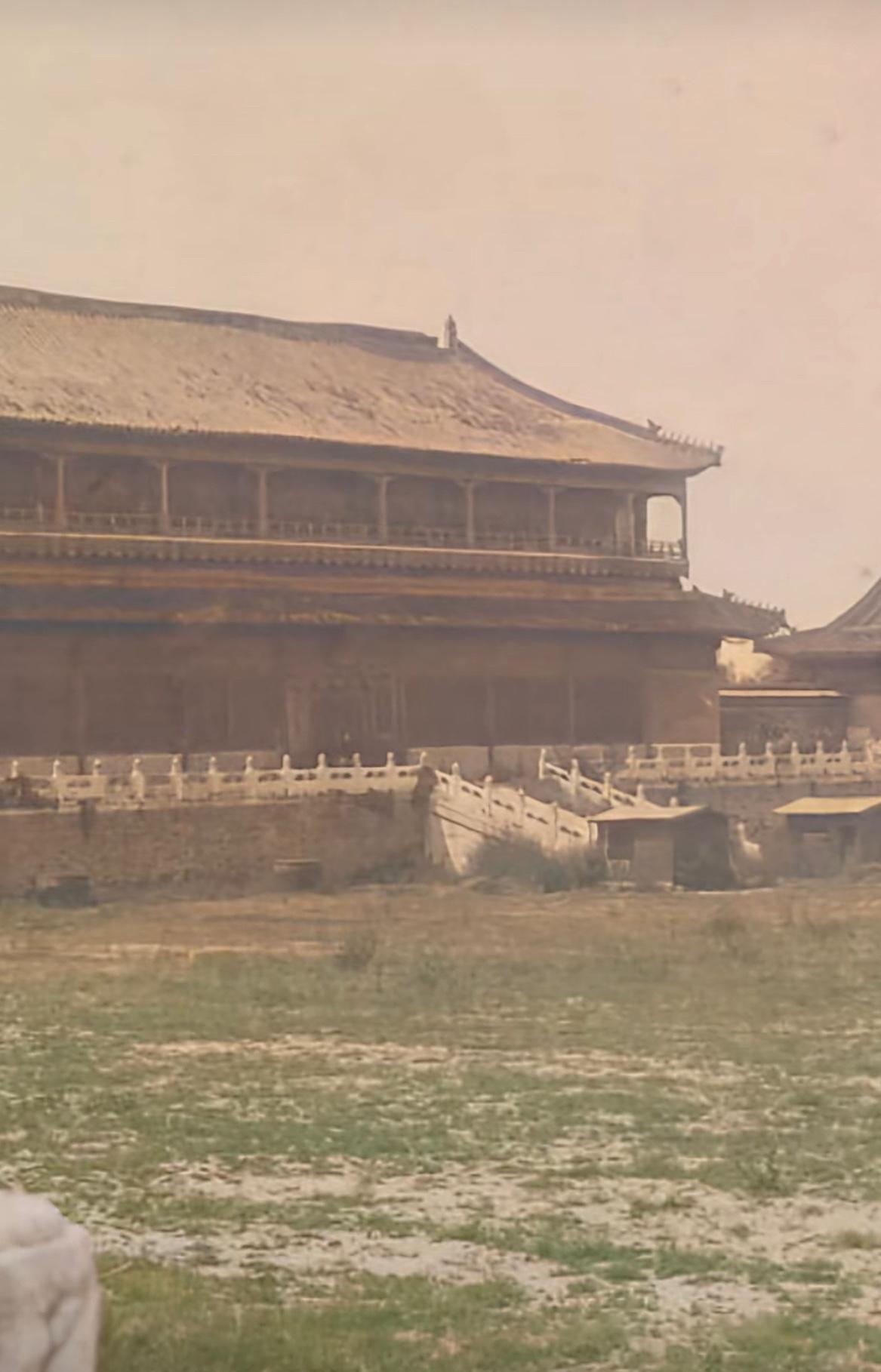 老照片:1901年(清朝光绪二十七年)的紫禁城太和殿,因为庚子事变,当时慈禧太后和光绪帝已西逃至西安,紫禁城自然也是无人打理,连重要的太和殿外都是杂草丛生。 紫禁城