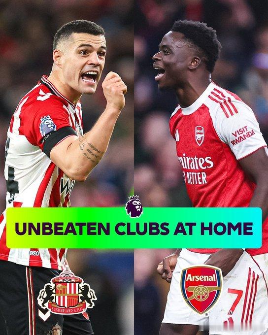 英超官推:本赛季只有两支球队的主场未尝败绩——桑德兰和阿森纳🏰
