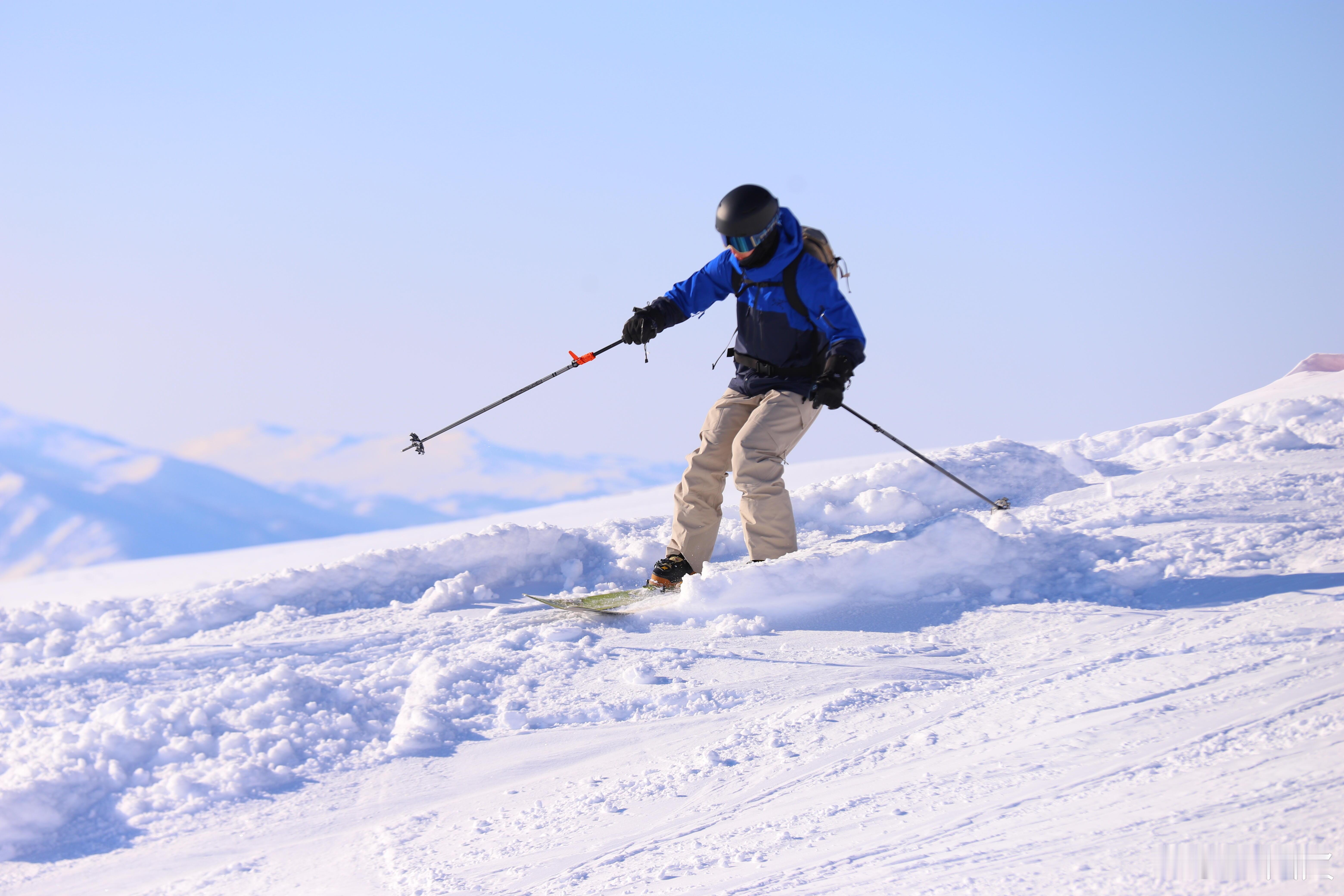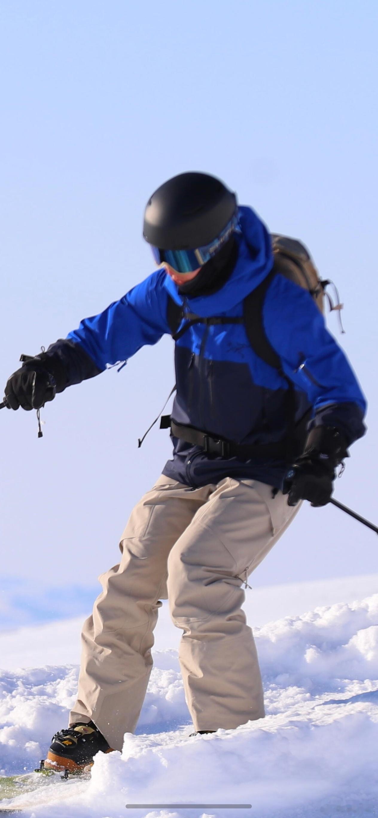 雪场摄影师随机记录,拍到了最清晰的一博在禾木吉克普林滑雪照,两套滑雪服!黄🟡色