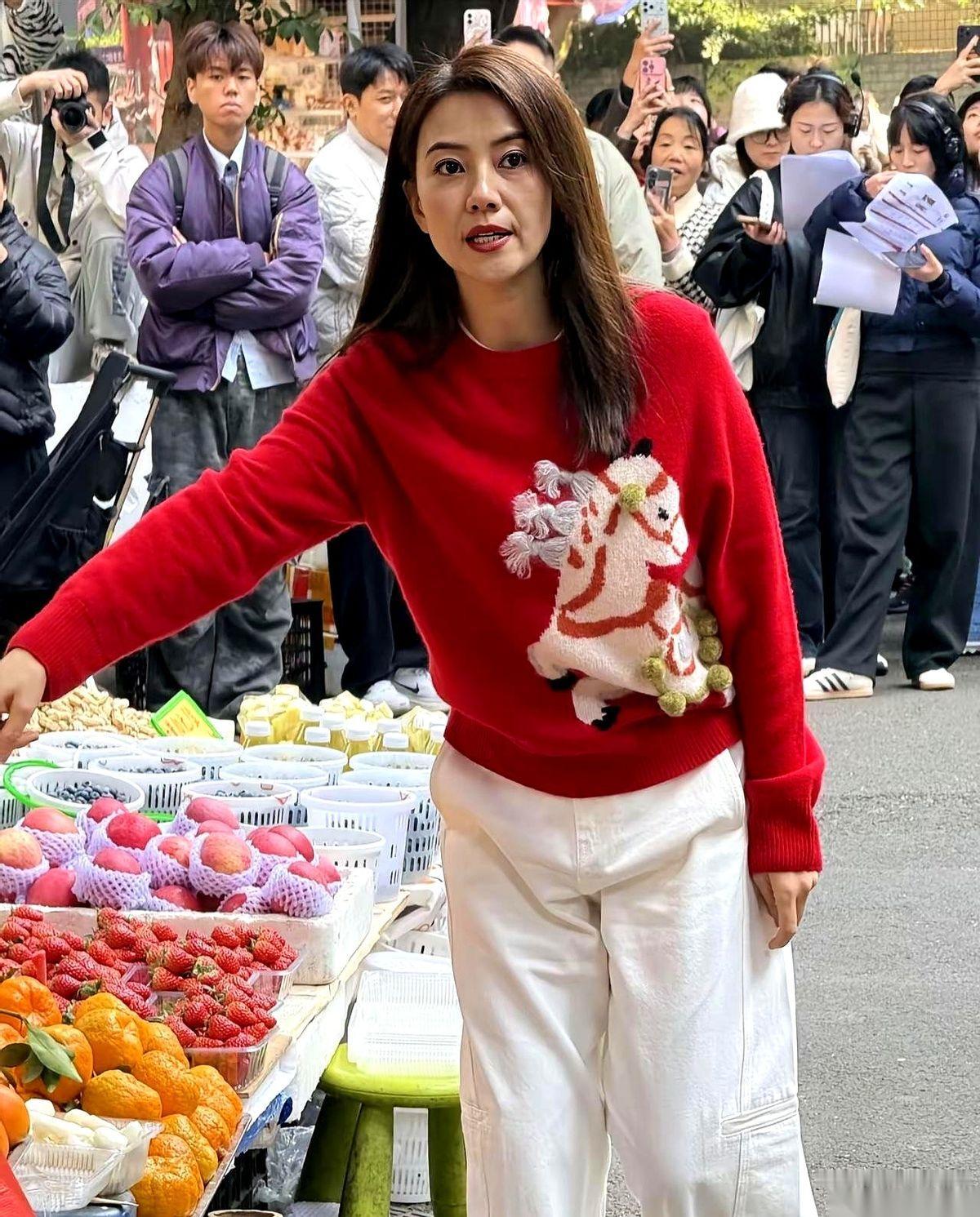 刷到高圆圆在菜市场的照片,我第一反应不是“哇女神”,而是长长地舒了一口气。 终于。 终于有个女明星,敢把46岁的真实状态就这么大大方方地亮出来了。 法令纹怎么了?皮肤有点松怎么了? 那不叫“老”,那叫“活过”的痕迹,是笑过、爱过、生活过的证明。 你看她,红毛衣白裤子,站在乱糟糟的菜市场里,跟大爷大妈聊天,自己挑水果买花。 那股子鲜活劲儿,是那些打针打到脸僵、连个大笑都不敢做的“冻龄美人”能比的吗? 比不了,完全是两个世界。 真的,美从来不是一张没有褶皱的皮囊。 美是一种气场,一种从容,一种“我就是这样,爱谁谁”的松弛感。 她没有拼命对抗岁月,她是跟岁月和解了。 然后,岁月把最好的礼物——气质和韵味——还给了她。 这比什么都高级。