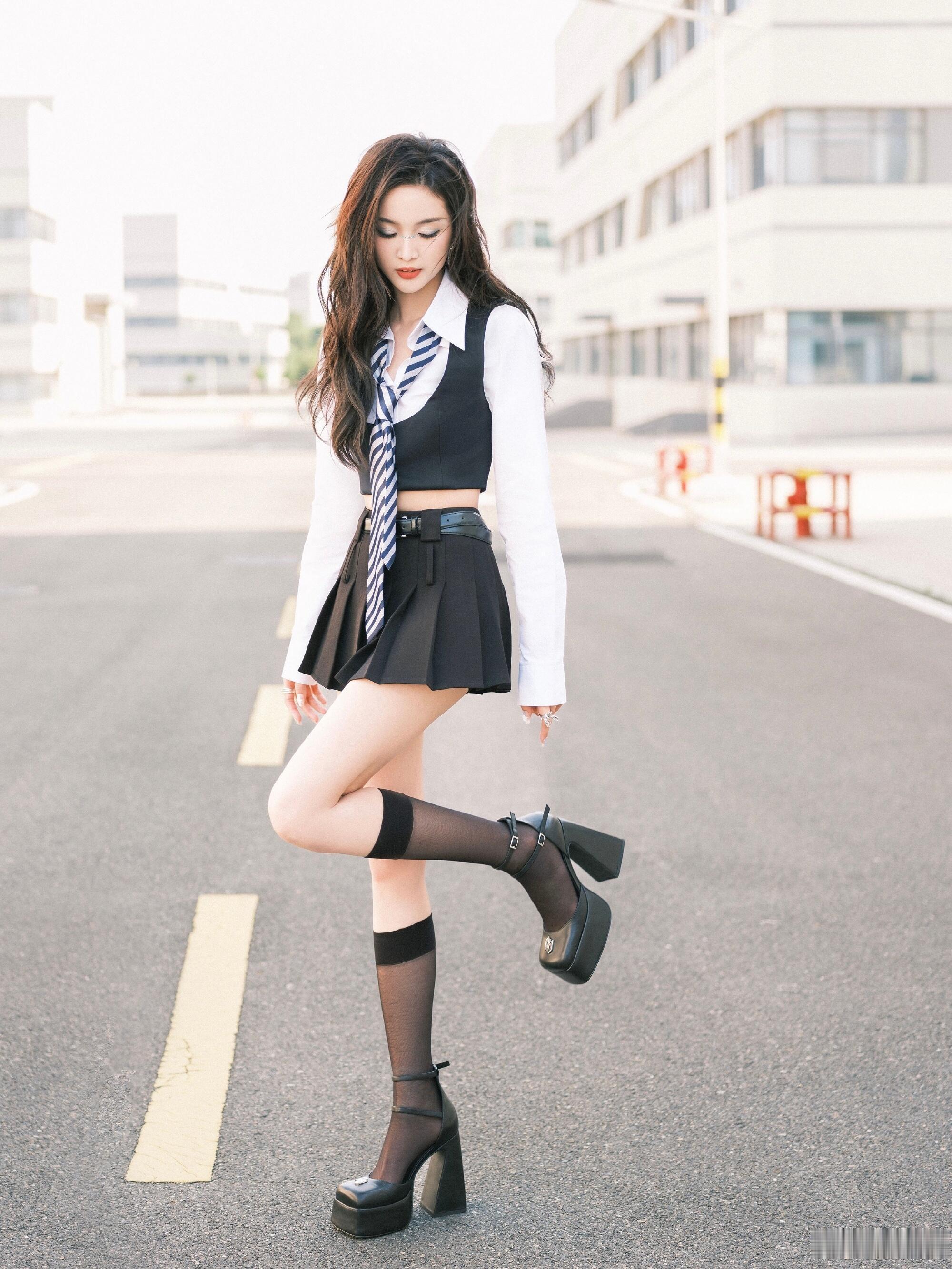 吴艳妮在成都穿着短裤大腿看起来很粗壮,表情自信又张扬