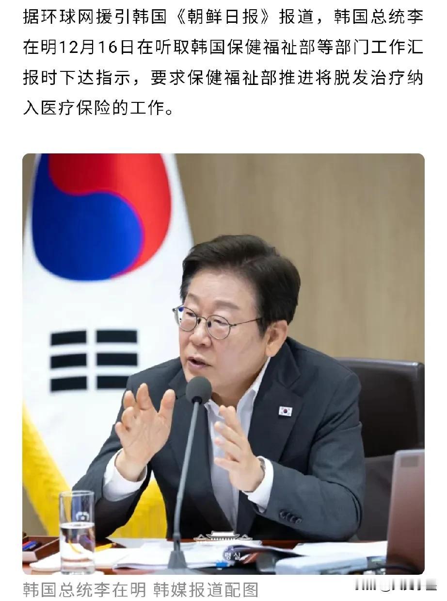 韩国计划将脱发纳入医保报销范围!如果真的实施,这一惠民政策将会是广大脱发者的福音,因为可以省很多钱! 话说韩国秃头的人有很多吗?他们多不多不清楚,我身边倒是有几个! 其中有一个男同事,今年刚26岁,前面头发就没剩下几根了,头发少了以后,他的额头显得特别大,整个人看起来比同龄人大几岁,比较显老。 他接受不了自己年纪轻轻就秃头这件事,为了不耽误找媳妇,他去机构做了植发,花了好几千,感觉效果不太理想,刚开始头发还行,一段时间后又开始掉了,是那种一把把的掉,他对此十分苦恼! 本来他想再换个机构试一下,但是因为刚贷款买了一辆车,手里没有结余的钱去种头发了! 近几年,受脱发困扰的人越来越多,而且还偏年轻化,当然脱发跟很多原因有关,包括遗传、生活作息不规律、头发头皮受损等等。 如果我们也能把脱发治疗纳入医保,那将是对脱发者极大的利好!