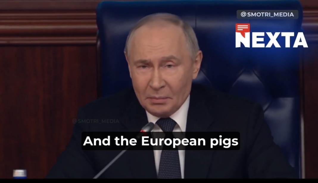 2025年12月17日,俄罗斯总统普京在国防部扩大会议上发表讲话时用猪崽侮辱性比喻来描述欧洲政客。 普京说:欧洲的“猪崽”加入了前美国政府(拜登时期)的行动,希望从俄罗斯的崩溃中“捞一把”,并试图“复仇”或收回历史损失。 普京这是一种强烈的侮辱性表达,意在贬低欧洲领导人贪婪、机会主义。多家媒体均报道了普京这一言论。