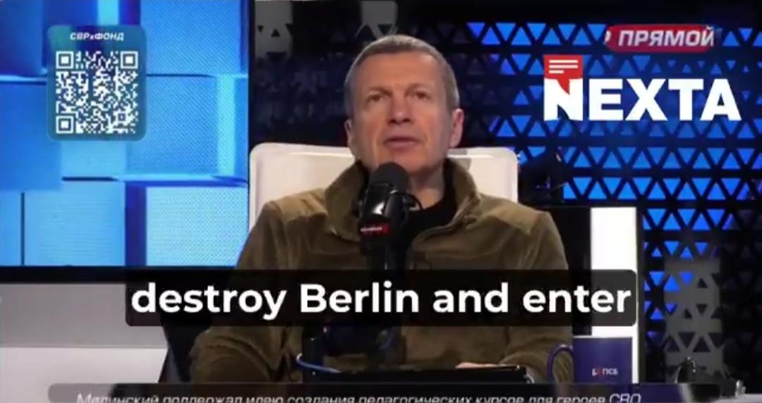 俄罗斯知名国家电视台主持人、克里姆林宫亲近宣传人士弗拉基米尔·索洛维约夫在最近(2025年12月16日左右)节目中说:我们将再次不得不摧毁柏林,并进入这个被上帝诅咒的城市。我们将再次进入巴黎。我们将再次解放维也纳,如果奥地利人不醒悟的话。