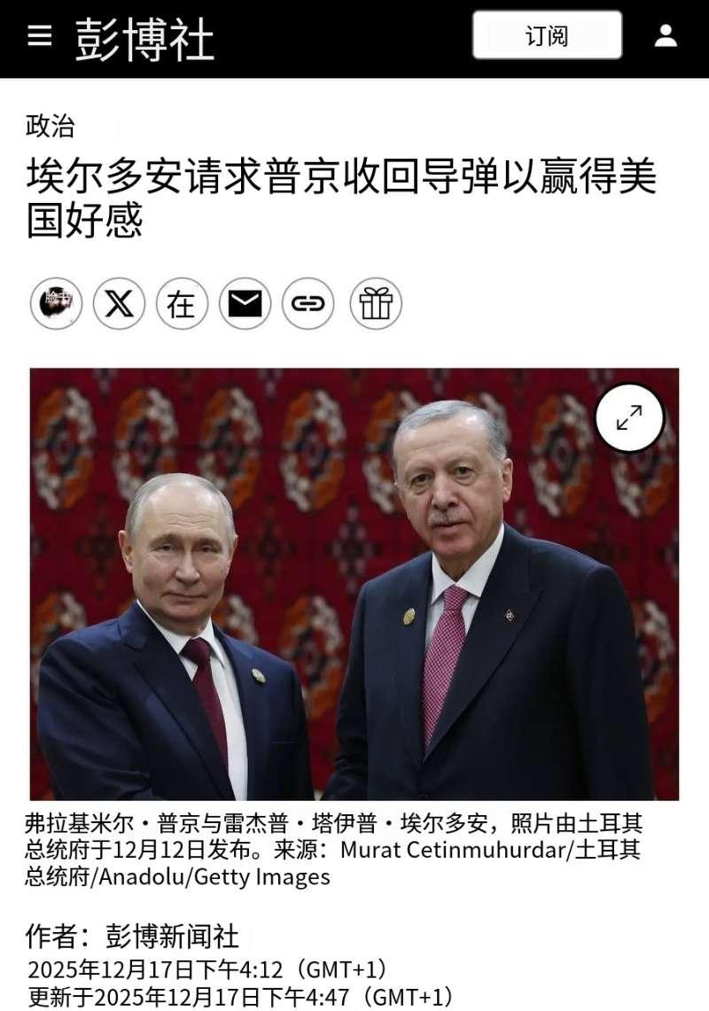 埃尔多安想退掉从俄罗斯那儿买的S-400 ? 彭博社(12月17日)报道,美国要土耳其放弃俄罗斯的S-400系统。交换条件是,美国取消对土耳其军工的制裁,还允许土方重新使用F-35战机。 据悉,这批S-400是2019年送到土耳其的,但因为美国施压,土耳其还被踢出了F-35项目,所以系统一直闲着、堆在仓库。有消息说,埃尔多安已经在12月13日与普京会面时,提了退货的事。 要我说,按照埃尔多安精明程度,他想要退货S-400只有两种可能,第一土耳其发现S-400就是个样子货,中看不中用,第二种情况是土耳其用了几年时间,已经把S-400研究透了,所以才要退货。 否则,很难解释土耳其为何拖到今天才考虑妥协,如果只是为换取F-35,早该让步了,何必等到S-400系统在仓库吃灰数年才妥协呢?