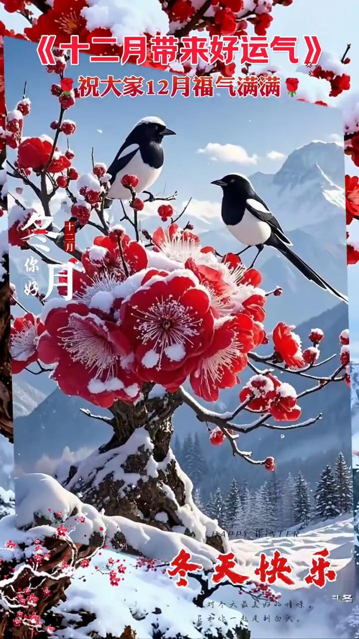 《十二月带来好运气》。 祝大家十二月福气满满,冬天快乐。十二月的我们心情好美丽,这一年忙忙碌碌,一季又一季,终于收获了最完美的结。十二月的你我都春风得意,你挣到了大把的人民币,我也如愿以偿要回归故里。感谢十二月带来的好运气。一朵雪花就是一欣喜,看南来北往的人笑容多甜蜜,吉祥的歌声飞过茫茫天宇。