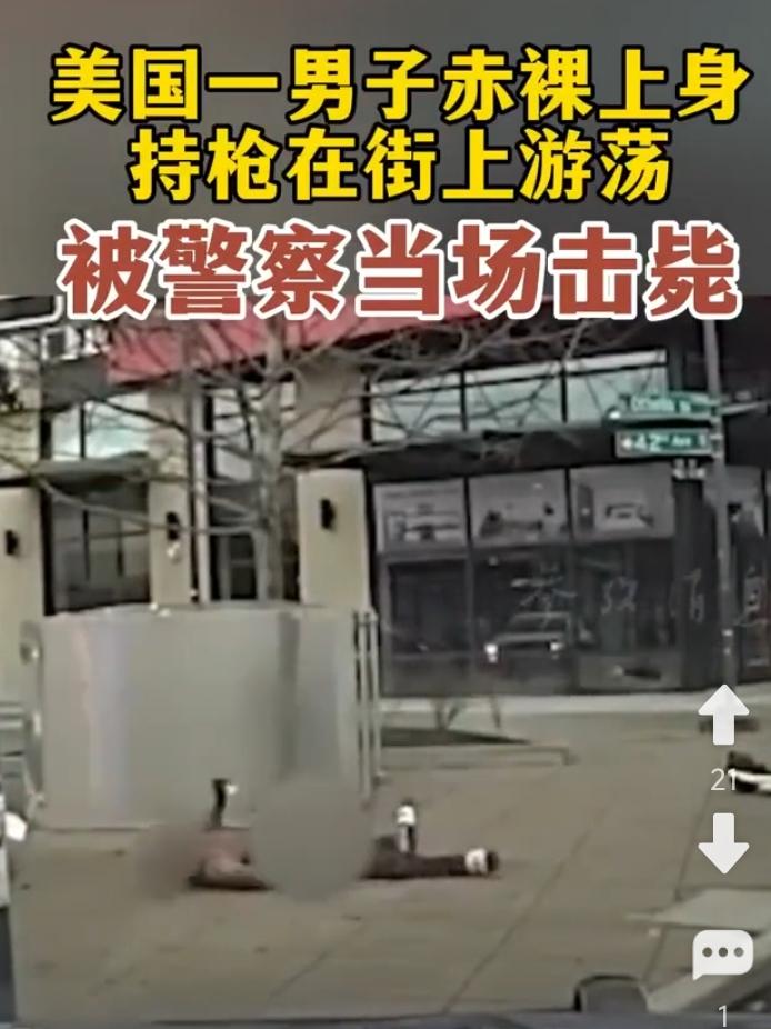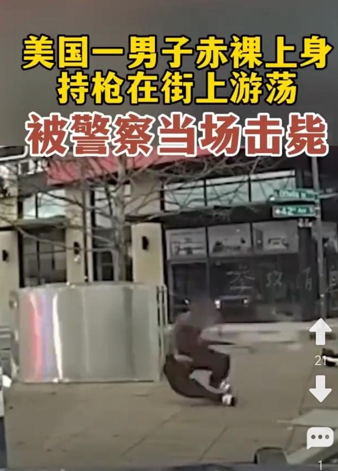 美国街头,一赤裸着上身,露出满身健子肉的男子持着枪四处游荡,恐吓行人。 被接警赶来的警察拦住。 男子恃着手中有“真理”,肆无忌惮的冲向警察。 正是手中有“真理”,世界任我行! 警察当然也不惯着他。 横行无忌的男子最终被警察开枪击毙。 这是用规矩告诉他,黑不是你嚣张的资本!