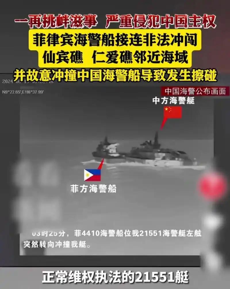 在12月12日,菲律宾在美国与日本纵容之下,开始了有组织、有预谋地纠集大量船只,在仙宾礁附近海域挑衅滋事,并冲闯仙宾礁潟湖。在中方一再劝阻和警告下,菲方人员甚至持刀威胁中方现场维权执法的海警,菲方行径严重侵犯中方主权和权益。 这里必须指出的是,仙宾礁位于南沙群岛东北部,礼乐滩和南方浅滩南面,距离爱礁很近。 早在1935年,中国公布其名称为西宾那礁。1947年,中国公布名称为仙宾暗沙。而现在菲律宾居然说“仙宾礁在他们的所谓专属经济区内”。但是站在中国的视角,菲律宾所谓的专属经济区原本就是瞎扯。菲律宾现在就想要在仙宾礁复制仁爱礁的成功经验,并且无所不用其极。 当天,由菲海警MRRV-4403和MRRV-4411巡逻船,带着20多艘渔船非法侵闯仙宾礁等附近海域。遭到中国海警21559艇、21562艇,以及5204舰依法管控驱离,驱离场面很激烈水炮喷射成了标配。中国海警23519艇、5204舰发射水炮的同时,还释放橡皮艇破坏菲律宾非法船只锚绳,以多种方式协同进行管控驱离。 12月13日,菲律宾海岸警卫队宣称,在高压水炮攻击下有3名菲律宾渔民受伤,包括淤伤和开放性伤口,还严重损坏了两艘渔船。 菲律宾敢于这么干,就是美国与日本的怂恿。美国公然指责中国“危及菲律宾渔民安全”,还嚷嚷着“美国会与菲律宾站在一起”。日本自然也是偏向菲律宾。美日这么干肯定是让菲律宾当炮灰。 这些年菲律宾在南海一直挑事,基本上就没占过便宜,它想靠美国、日本撑腰,可这些域外国家只会嘴上喊口号,真要出事根本不会帮菲律宾“扛雷”。而在菲律宾内部,因“防洪工程贪腐案”闹得沸沸扬扬,老百姓抗议不断,小马科斯急需转移注意力,就想拿中国碰瓷。国际时事 我是清水空流,历史的守望者。期待你的关注和点评。