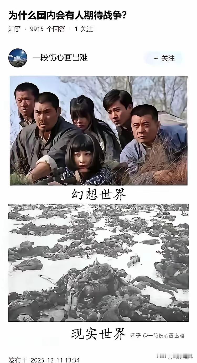 首先,这个问题就错了。不是我们中国人期待战争,而是总有一些外国人想把我们中国人卷入战争。 其次,我们中国不是百年前了,如果我们被迫卷入战争了,那战场一定不会在我们的土地上。 最后,我们中国人爱好和平,从不期待任何战争,但是如果有人想把战争强加给我们,我们也绝不会害怕战争!