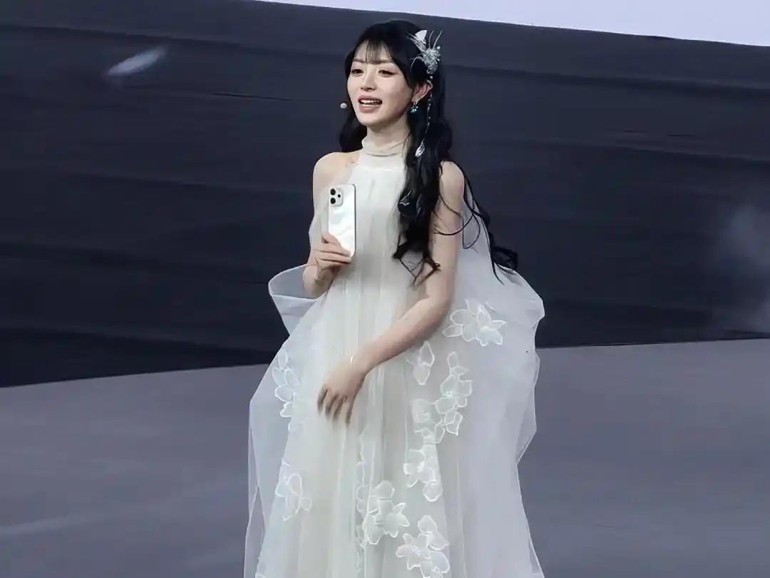 田曦薇出席武汉vivo发布会,穿白色挂脖礼服仙气飘飘好漂亮