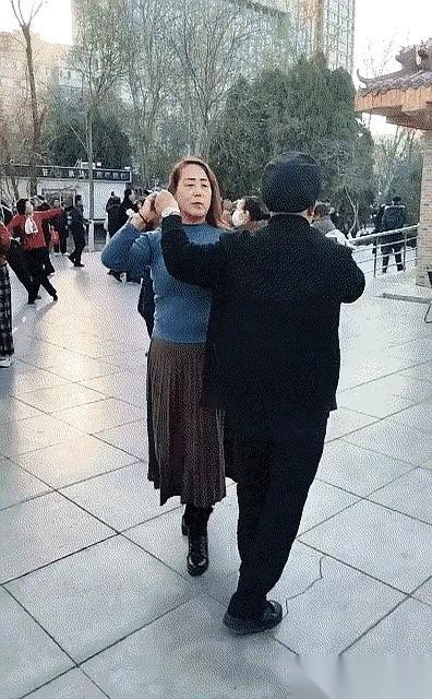 高手带人,根本不用嘴。 就往姑娘后背上轻轻拍两下,人就跟上了发条似的,唰一下,身子自己就转过来了。 那股劲儿,你给一分嫌多,给一分嫌少,拿捏得死死的。 这哪是跳舞啊。 这教的是一种“确定感”。 你看大爷那步子,稳得像地里长出来的一样。他不是在炫技,他是在告诉你:这片舞池,我说了算。节奏、方向、下一个动作,你不用想,跟着我就对了。 这种“你跟我走,准没错”的底气,是多少人学一辈子都学不会的东西。 再看那姑娘,她舞步好吗?其实一般。 但她为什么显得那么好? 因为她把自己完全交出去了。她的大脑是放空的,身体是信任的。 这才是顶级的默契。 不是你说东我马上就往东,而是你什么都不用说,我就知道,该往哪儿走。