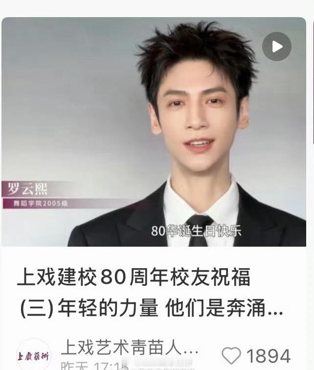 上戏80华诞庆生视频这么多毕业生封面就放罗云熙一个在校的时候就是很优秀的学