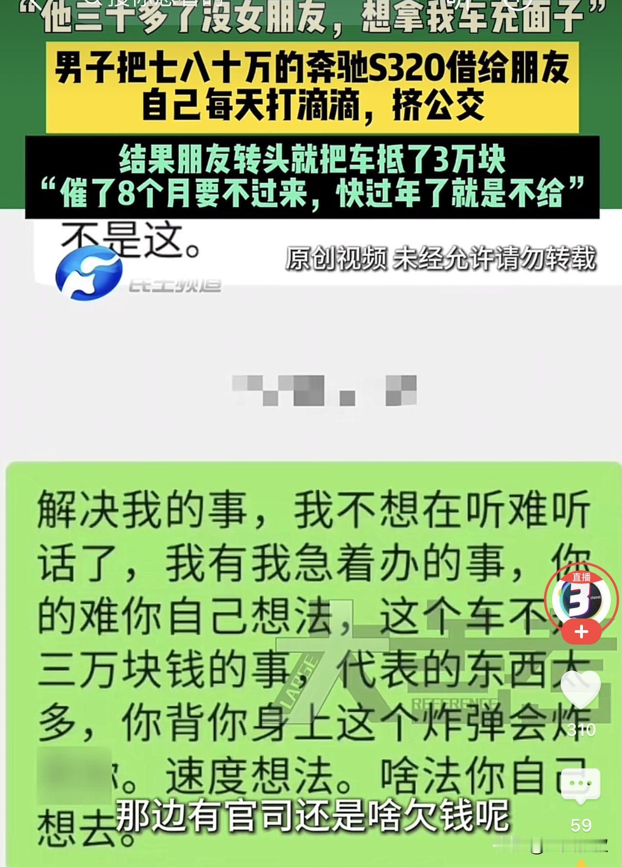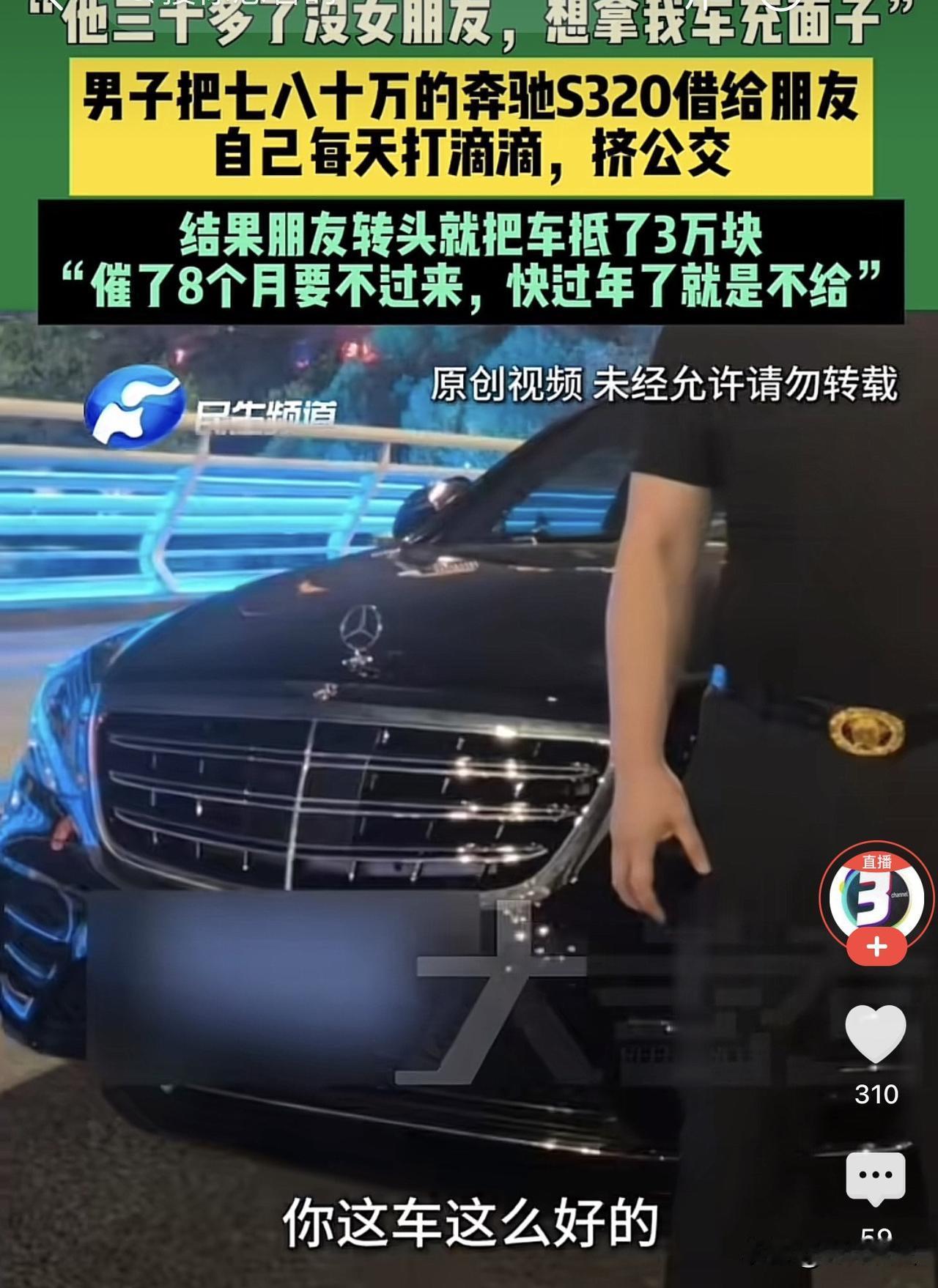 河南郑州,一男子有一辆奔驰S320,结果被一三十多岁朋友借走相亲,谁知朋友借走之