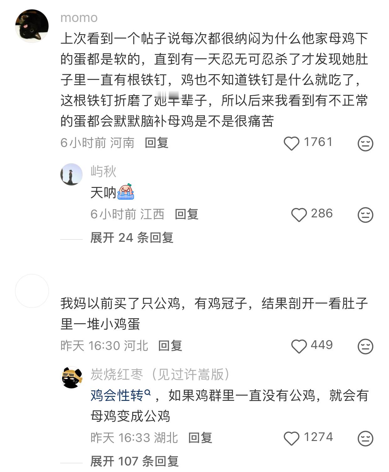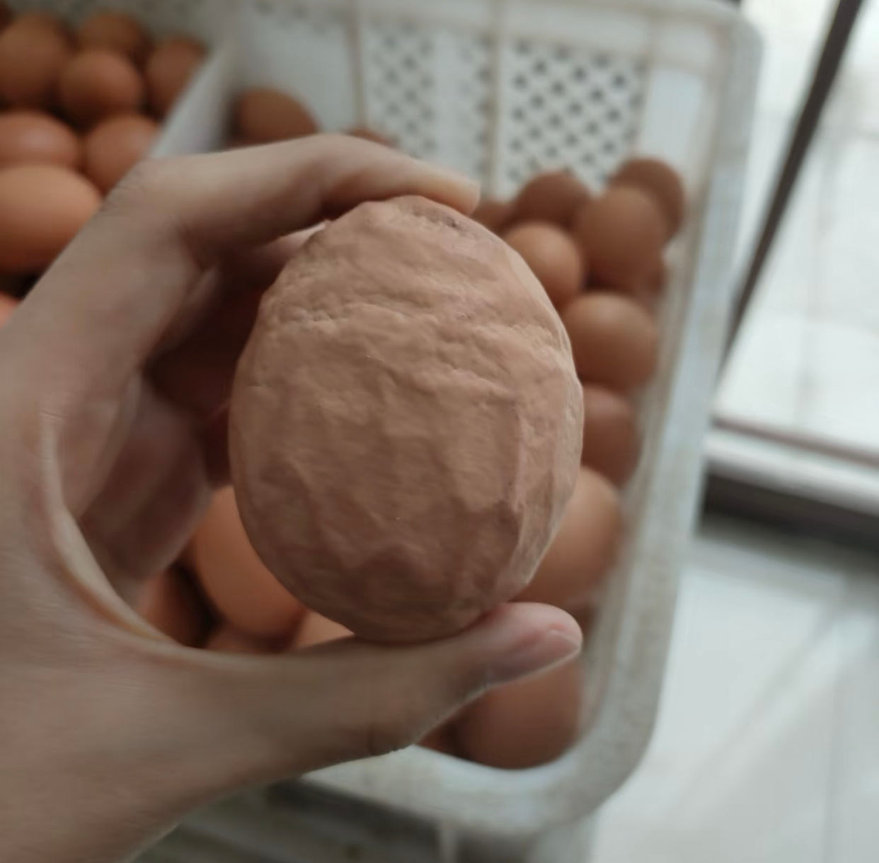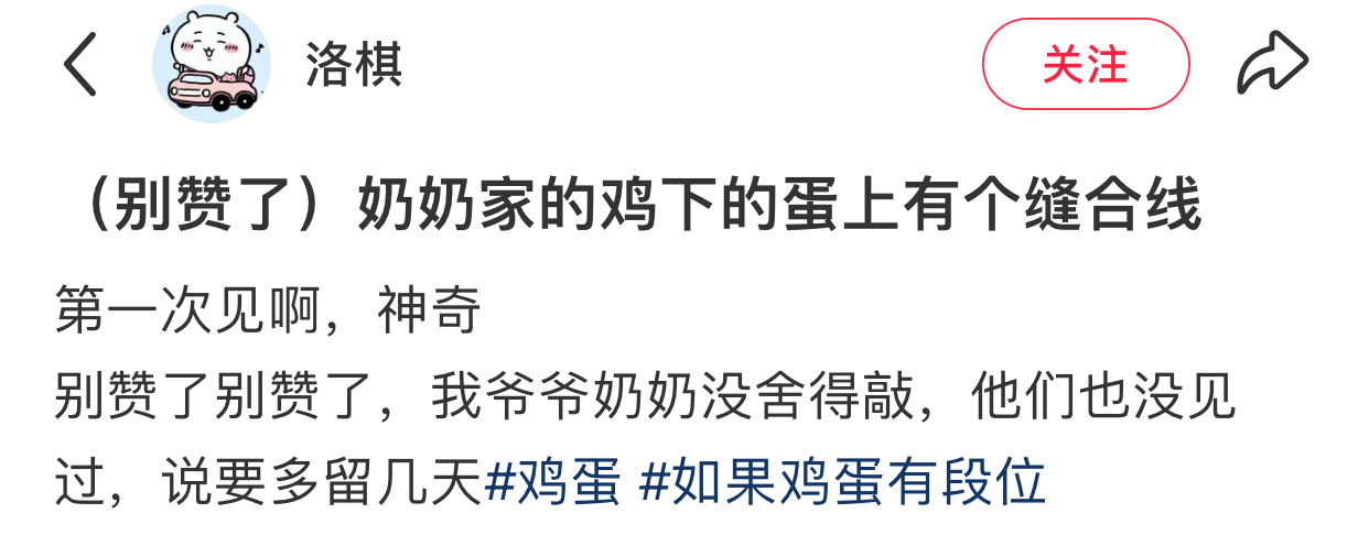 奶奶家的鸡下的蛋上有个缝合线