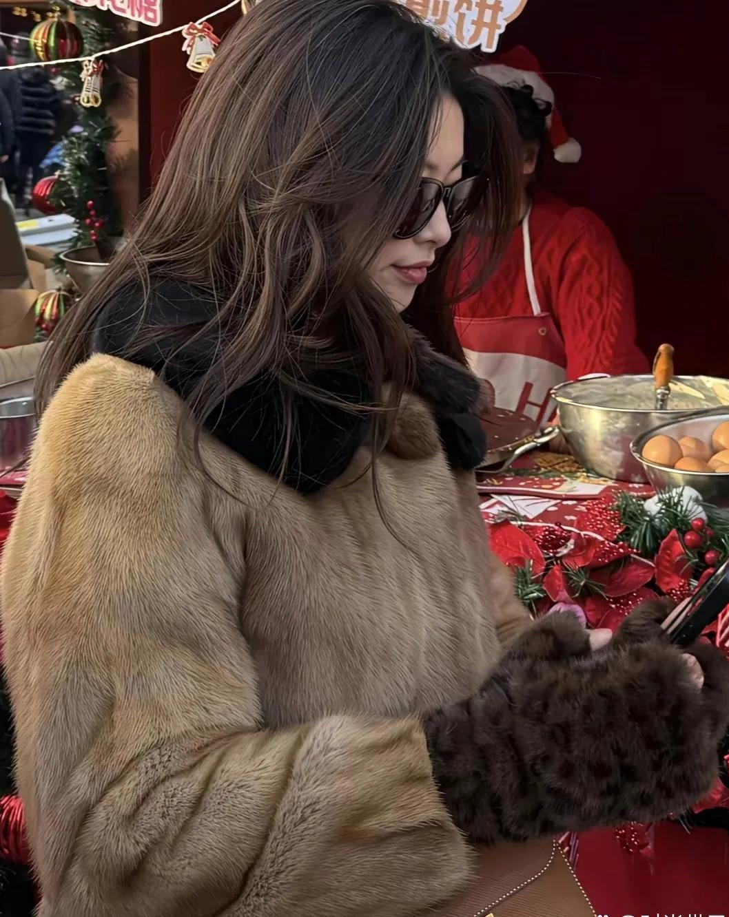 朱珠的冬日贵气穿搭太绝了 朱珠这套冬日私服直接把贵气与松弛感焊在身上!棕色系皮草外套质感拉满,拼接设计更添层次感,搭配灰色针织阔腿裤,柔化了皮草的厚重感,慵懒又高级,视觉上既舒适又显贵,这穿搭品味真的没话说~