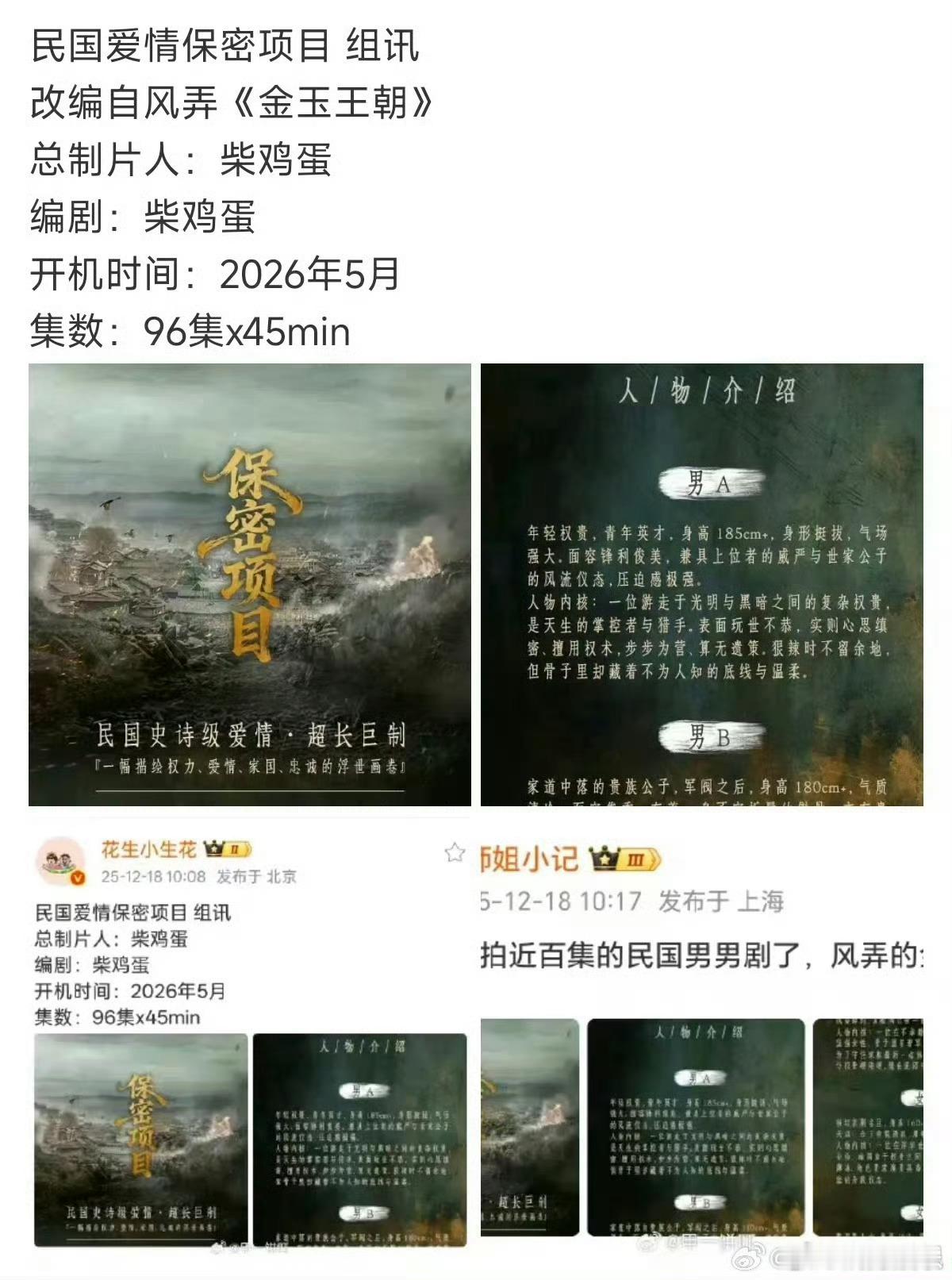 柴鸡蛋 金玉王朝 柴鸡蛋和光线合作剧集《金玉王朝》!一共90多集,这部剧主要角色有八个男生!明年内娱又要热闹了