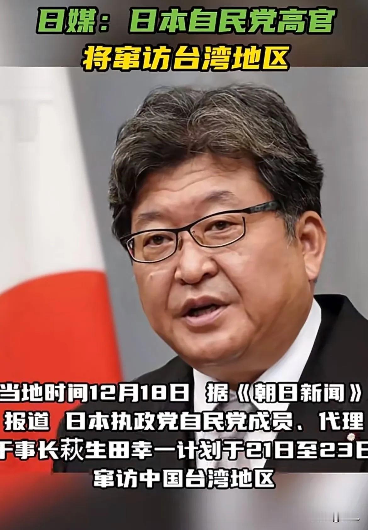 日本又来搞事了。 12月18日,据《朝日新闻》报道,日本执政党自民党成员、代理干事长萩生田幸一计划于21日至23日窜访中国台湾地区,其间预计将与台当局领导人会面。 这哪是什么拿得上台面的访问,纯粹就是揣着明白装糊涂的政治挑衅。台湾是中国领土不可分割的一部分,这是国际社会公认的铁律,日本在《中日联合声明》里早就签字确认,承认中华人民共和国是中国唯一合法政府,台湾是中国领土。 萩生田绝非无足轻重的政客,身为自民党代理干事长,他的一举一动都带着明确的政党意志。他本就是自民党亲台派核心成员,和古屋圭司等人一路货色,长期热衷给台独势力站台,这次窜台不过是故技重施。 自民党内部的亲台势力早就盘根错节,1973年就搞出日华关系议员恳谈会,巅峰时凑了152名自民党议员,专门鼓捣对台不当交流。萩生田这趟窜台,正是这股势力的又一次表演。 2021年8月,自民党政调会相关负责人就和台当局政客搞过所谓2+2会谈,悄悄把日台关系往安保领域带。如今萩生田跟进窜台,本质就是想进一步升级这种违规勾连。 更让人觉得讽刺的是,日方嘴上喊着遵循《波茨坦公告》,转头就翻出早已被历史扫进垃圾堆的旧金山和约,妄图炒作荒谬的台湾地位未定论。这种自欺欺人的把戏,明眼人一眼就能看穿。 今年是台湾光复80周年,日本曾殖民台湾整整50年,那段岁月里的掠夺与压迫,两岸同胞从来没忘。现在日方政客又想来伸手插手,真当历史教训是耳边风? 从11月开始,从外交部到中国驻日使馆,中方已经多次严正表态,警告日方立即停止干涉中国内政的行径。11月24日,外交部发言人毛宁更是明确指出,决不允许任何外部势力染指中国台湾地区。 萩生田的背后,站着自民党内安倍派等反华势力。这帮人成天鼓噪台湾有事就是日本有事,妄想把台湾打造成遏制中国的棋子,却忘了棋子的命运,从来都是随时可能被弃。 要知道,2024年中日双边贸易总额达3083亿美元,中国是日本最大贸易伙伴。日本的汽车零部件、半导体设备等关键产品,高度依赖中国市场。政客为了政治私利瞎折腾,最后埋单的只会是日本企业和普通民众。 台独势力幻想着倚仗外部势力谋独,根本就是痴人说梦。那些外部势力不过是想利用台湾牵制中国发展,哪会真心为台湾的安危和福祉着想? 全体中华儿女捍卫国家领土完整的决心,是刻在骨子里的。不管是台独分裂分子,还是外部干涉势力,谁敢踩红线越雷池,就必须付出惨痛代价。 中日关系的政治基础不容动摇,一个中国原则是底线中的底线。日方政客该醒醒了,玩火者,终究要自焚。 各位读者朋友你们怎么看?欢迎在评论区讨论。