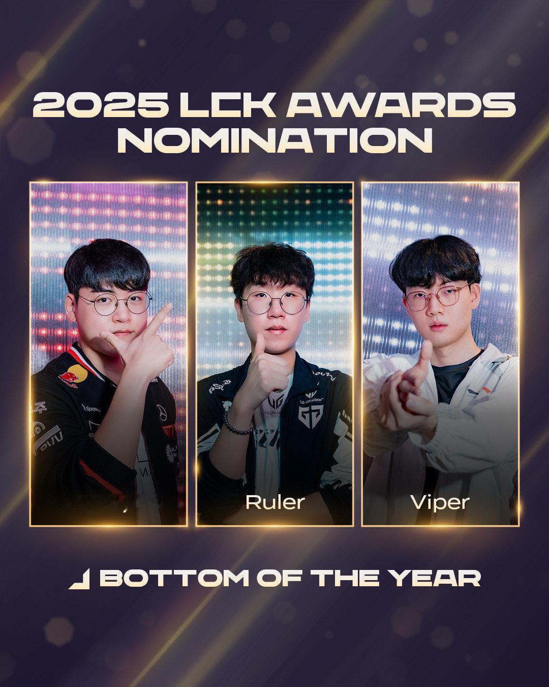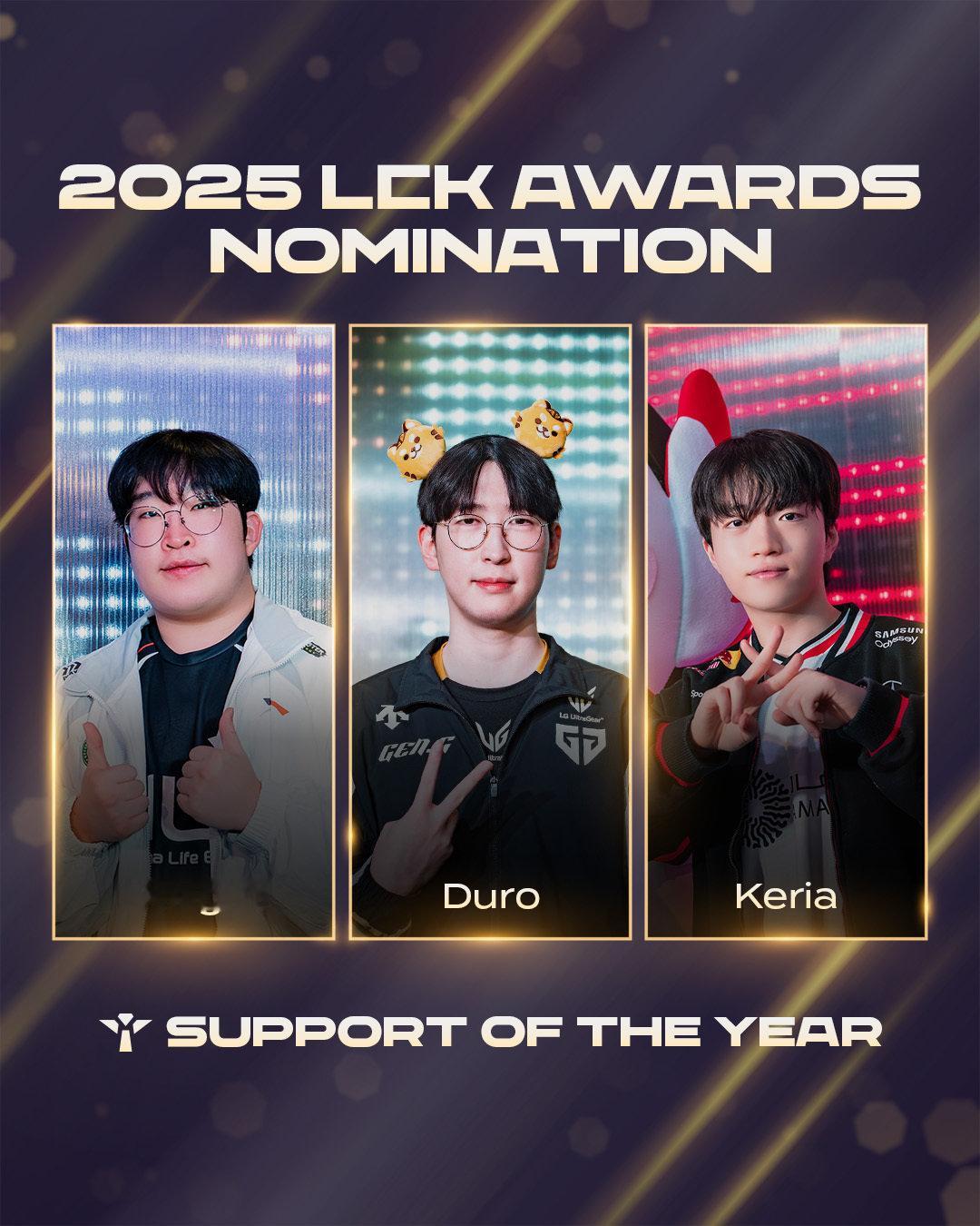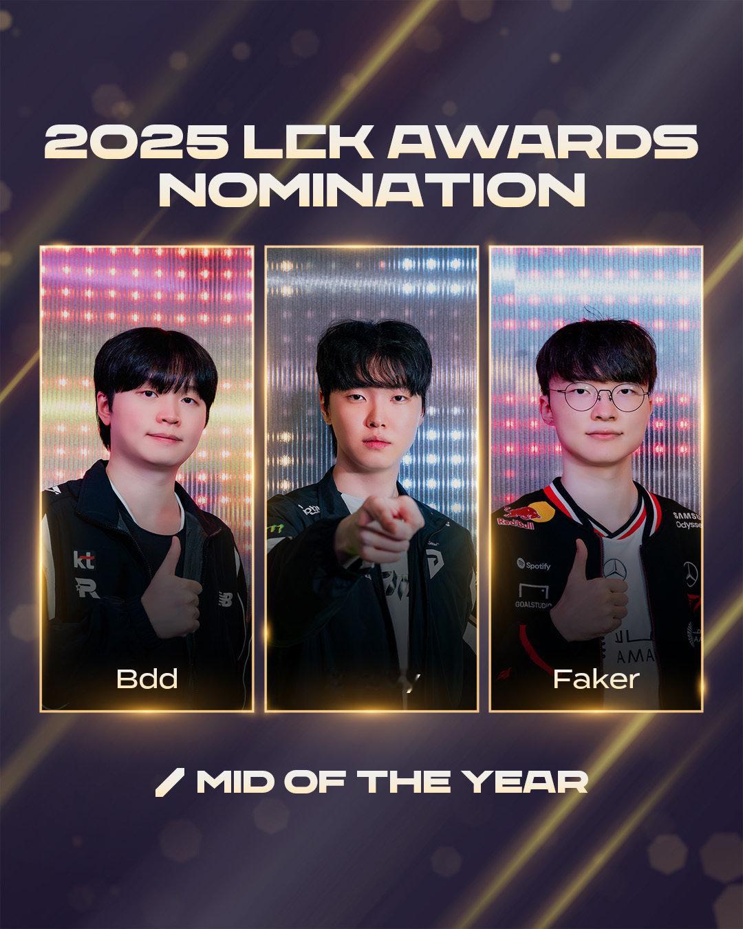 LCK官方公布年度最佳各位置候选名单,25T1、GEN全员在列,KT中野成功入选