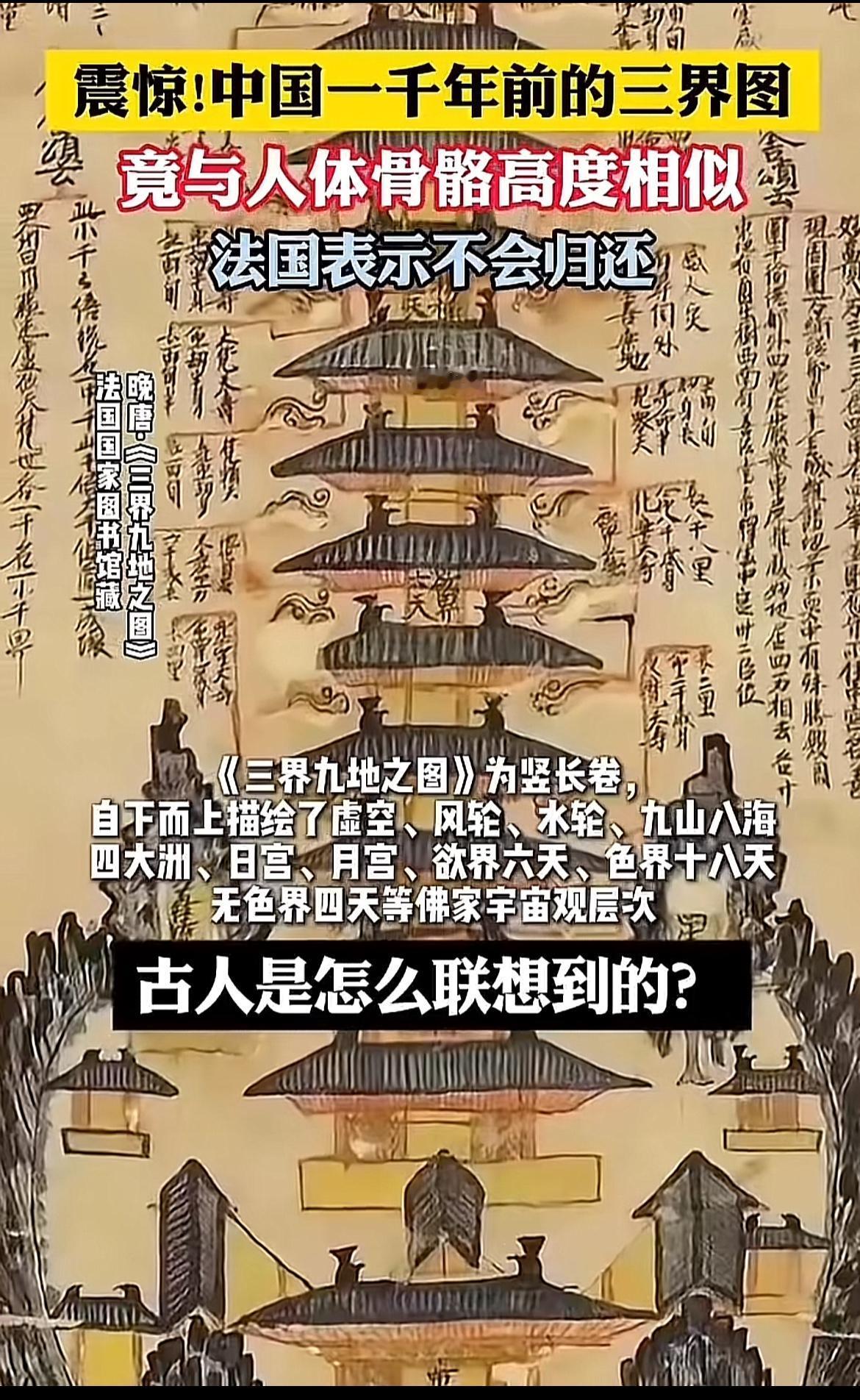刚看到个超神奇的事儿,1000年前的三界图居然和人体骨骼高度相似。这不禁让人浮想联翩,难道宇宙真的只是一个人的体内?古人在绘制三界图时,是巧合还是另有深意?说不定他们早就洞悉了人体与宇宙的某种神秘联系。在那个科技远不如现在发达的时代,他们是如何勾勒出这样一幅与人体骨骼相似的图呢?这就像一个神秘的谜题,等待着我们去解开。或许这其中隐藏着古人对世界、对人体的独特认知,真希望能有更多研究揭开其中的奥秘。