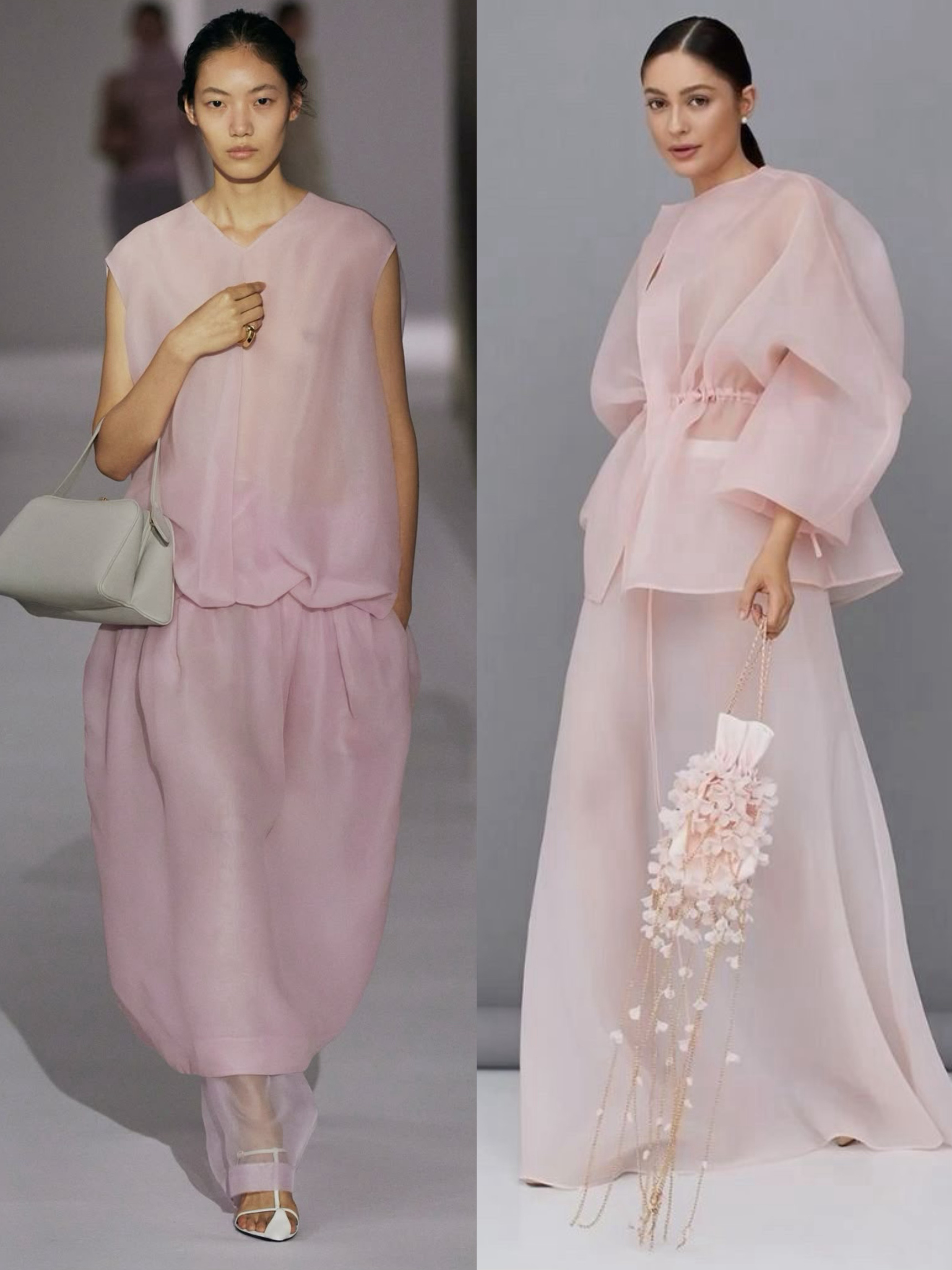 盘点2025流行色——淡雅粉🌸🍃。2025年的时尚与设计领域,“淡雅粉”成为一个备受关注的趋势色,不论是秀场服饰、街拍造型,还是室内设计与美容搭配,这种柔和、轻盈的粉色都以其独特气质吸引了大众的眼球。 🌸“淡雅粉”是一种低饱和度、温和柔软的粉色调,介于粉白与浅粉之间。它不像鲜艳的玫红或霓虹粉那样高调张扬,而是偏向于一种宁静、治愈系的色彩表达。这样的色调在视觉上能带来舒缓感和细腻的情绪,让人联想到温柔、浪漫和舒适的感受。色彩心理学表明,柔和粉色常被用于传达关怀、温情和安心的感觉,有助于营造平和愉悦的氛围。 🌸在2025/26秋冬时装秀场上,淡雅粉成为重要的流行色之一。设计师将其运用在针织衫、连衣裙、西装外套甚至高定礼服上,使整体造型既保留了高级感,又增添了一抹柔情。相比高饱和色系,淡雅粉更容易被大众接受,尤其适合追求低调优雅风格的造型。 🌸这种粉色也在春夏系列中频繁出现,设计师用轻盈材质如丝绸、雪纺、新型轻盈材质等演绎出“云朵般的粉色”,使整体造型既显清新又富有浪漫气息。粉色调的搭配也非常灵活,可与白色、米色等浅色系形成柔和的高级感,也可与深色如巧克力棕组合,呈现现代对比美学。 🌸除了时尚,淡雅粉也在美容与生活美学中跃上潮流榜单。例如在美甲、配饰甚至家居软装中,这种轻盈粉色也常用于传递柔和美感,成为“治愈系审美”的代表之一。它既能提升视觉温度,也能为空间或造型带来宁静而温馨的氛围。 🌸这一色系的流行与全球审美从高饱和刺激转向“柔和宁静、内敛优雅”密切相关。在快节奏与高度信息化的生活环境下,淡雅粉提供了一种视觉上的缓冲与情绪上的安抚,使人们在外出造型和生活空间中都能感受到柔软与安稳感。淡雅粉风格大赏2025年色彩记忆