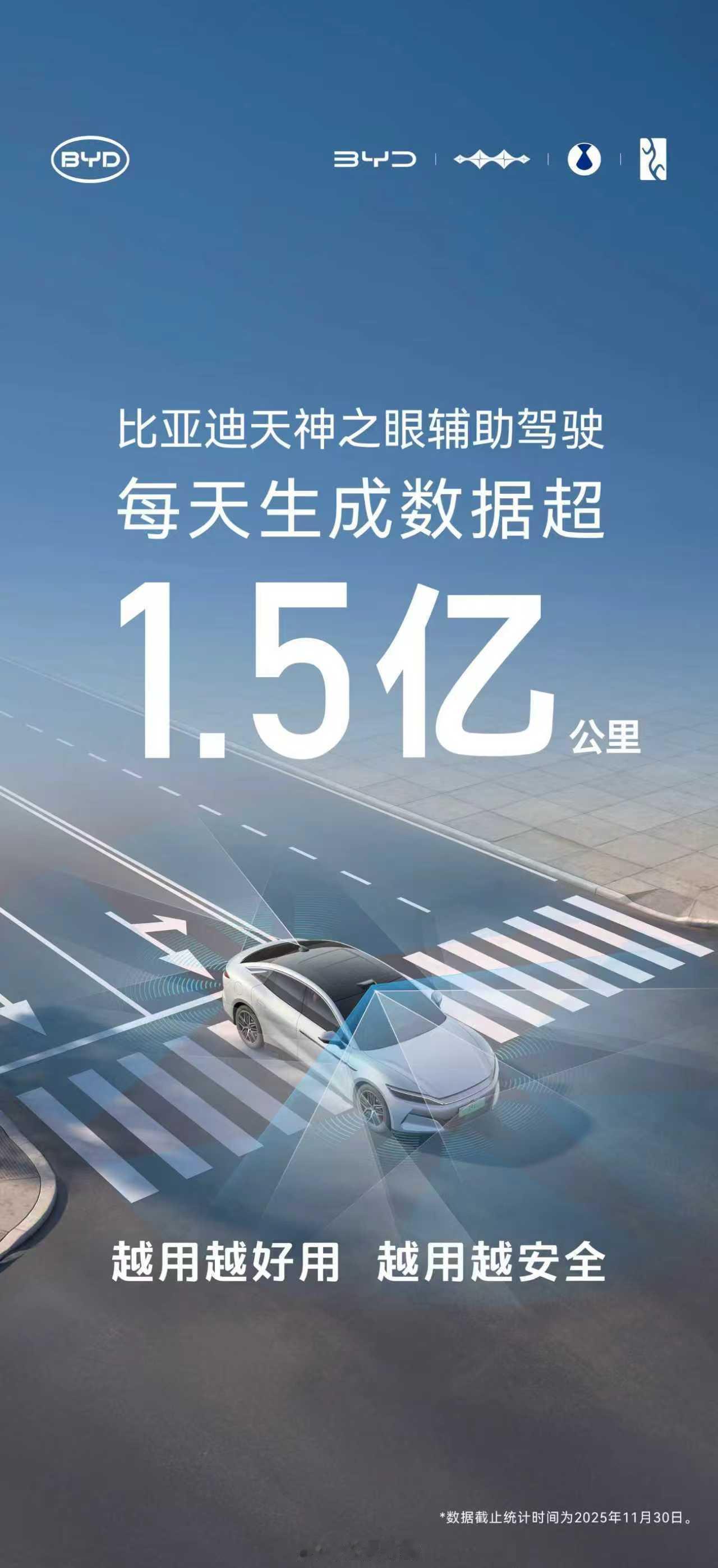11月比亚迪搭载“天神之眼”辅助驾驶系统的车型单月销量达到 311267辆其中王朝与海洋系列就贡献了 265734辆,这说明辅助驾驶已经真正进入了主流市场 。截至 2025年11月底,“天神之眼”累计装车量超过 230万辆,持续位居中国辅助驾驶车型销量与系统装车量前列,这个规模本身,已经决定了它的技术路线必然来自大量真实用户的长期使用。更重要的是数据质量——目前系统每天产生的辅助驾驶数据超过 1.5亿公里,这些来自真实通勤和复杂路况的数据,为算法训练和系统迭代提供了持续输入 。在此基础上,比亚迪还对泊车辅助场景作出无上限、不限首任车主的安全兜底承诺!从我个人的理解来看,这套体系真正重要的并不是某一个功能点,而是它被放进了长期、真实的使用环境中。辅助驾驶本身就是一个需要在大量现实场景中不断进化的系统,而 230万辆的装车规模和每天 1.5亿公里 的真实数据,让技术迭代不再停留在理想状态。泊车辅助兜底和持续OTA,也是让辅助驾驶从“能不能用”逐步走向“敢不敢长期用”的关键所在