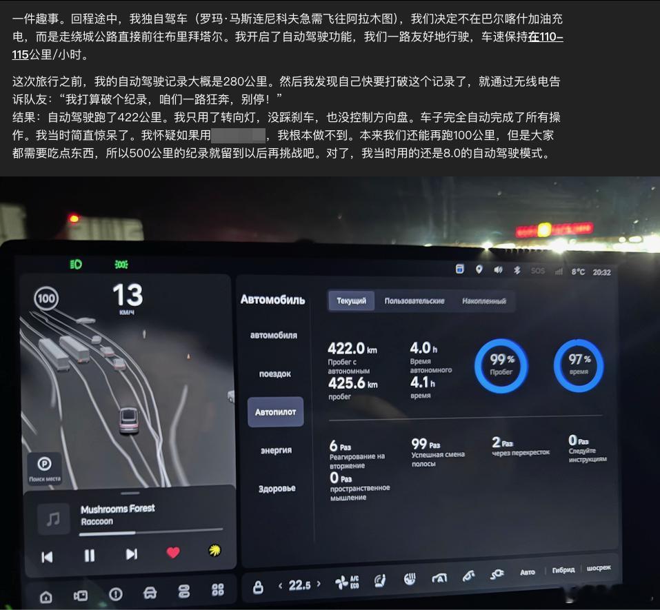 海外论坛一位哈萨克斯坦的理想L7 Max车主,提车仅4个月就跑了1万两千公里使用辅助驾驶LCC最远一次跑了422公里,车速在110到115km/h,版本是OTA 8.0说自己全程没踩刹车没碰方向盘,下次他还想挑战500公里不接管理想汽车理想L7