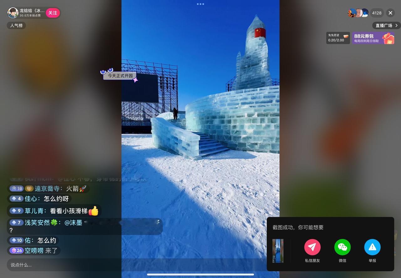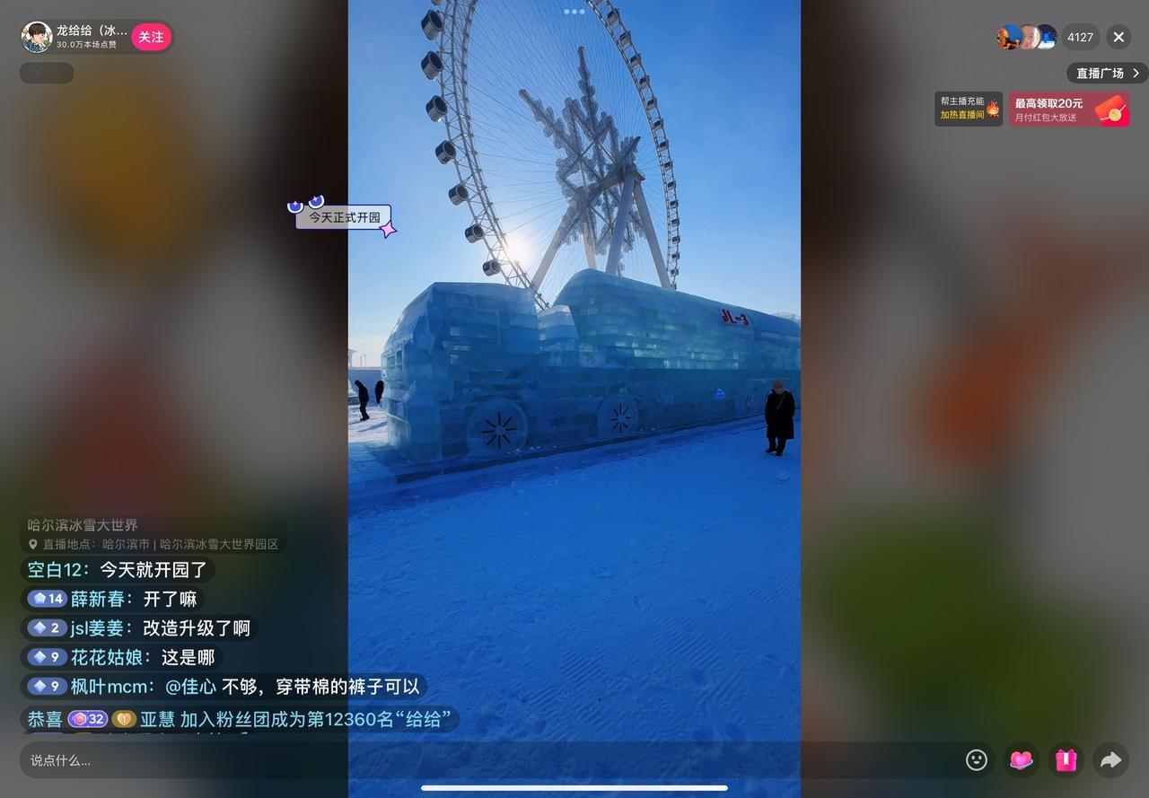 昨天是哈尔滨冰雪大世界开圆的日子,第27届哈尔滨冰雪大世界,我是在直播中看到的,上午9:00到10:00就已经开始陆续的有一些游客过来拍照,第二张图居然还有摩天轮、这一次的冰雪大世界有很多很多不一样的东西,就比如说主持人说今年的冰雪大世界志愿者是比往年还多的,面向整个东北地区、以前都是各个高校的志愿者,现在不是了,就是所有人都可以来当志愿者。 冰雪大世界的主持人还介绍所有的冰雕都是从别的地方运过来,就在冰雪大世界里面进行雕刻的,想一想这么冷的天气,在室外进行雕刻,甚至还有楼梯也进行了铺地毯改造,所有的楼梯好像都有地毯,就是防止外来的人脚底滑倒, 然后我还听到了什么什么大桥,就是在某个地方可以看到什么什么大桥,然后今年的冰雪大世界就是全部进行改造升级,甚至还有一些在电视上看到的一些东西也进行了雕刻,值得注意的是还有滑滑梯第一张图就是,而且特别特别的爽,每一个滑道都有人进行测验,确保来哈尔滨冰雪大世界的人都能感受到滑道的乐趣,还有很多东北的特色、比如说在某个当天还有锣鼓队