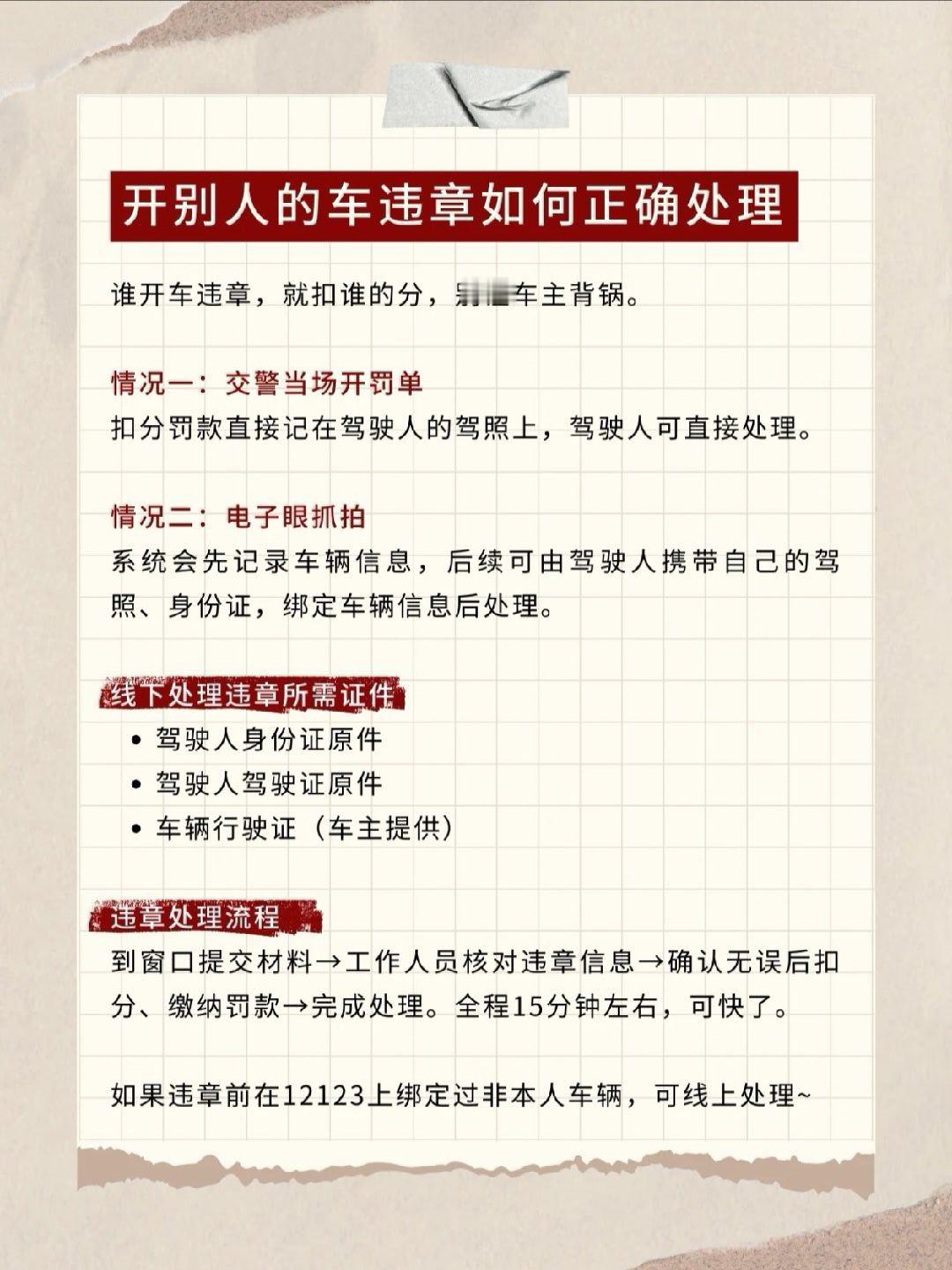 开朋友、家人的车违章了搞清楚规则 自己就能轻松处理!👏记住谁开车,扣谁分,别让车主背锅。交警当场抓:直接记驾驶人分。电子眼拍:用驾驶人自己驾照去处理即可。常用他人车的话,建议在12123上提前绑定“非本人机动车”,方便后续处理哦~我与汽车的日常大v聊车