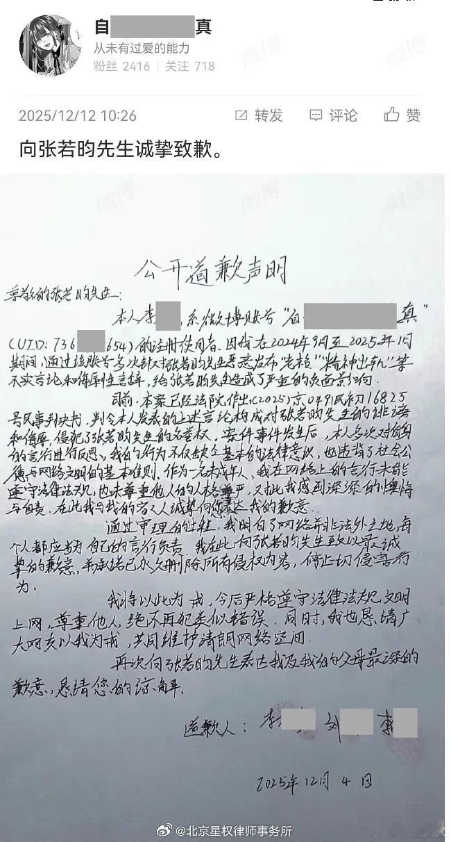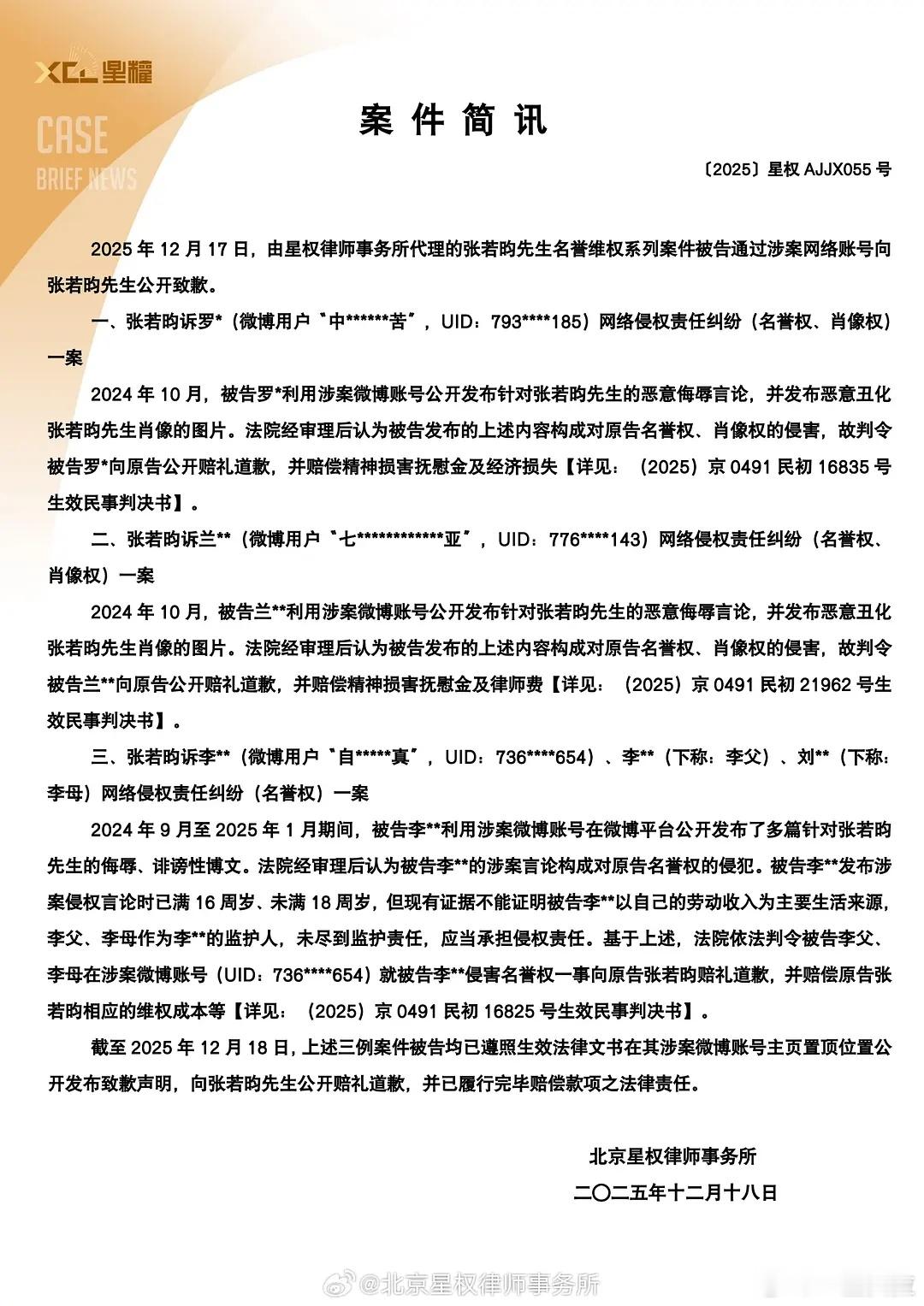 张若昀告黑宣判:未成年侵权父母也有连带责任,一家三口发道歉声明。这是为了谁?这样