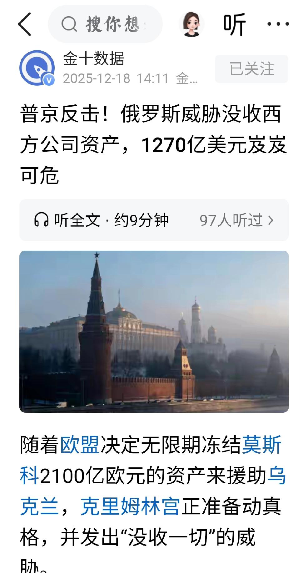 看清欧洲各国的时候 个人观点:俄罗斯威胁没收,价值为1270亿美元的西方公司资产。这正是瞪大眼睛,看清欧洲各国真面目的时候了,这出重头戏就要开始了。 真正的精彩是:明知道各国都要保护本国的公司资产,那么有的国家多,有的国家少,还有的国家彻底没有,这就决定了各国的政策无法统一。彻底没有在俄罗斯投资的国家,必然是坚定维护,没收俄罗斯在欧洲的资产,而其他的国家又会如何选择呢? 这些都是我们可以预判的正常的举措。但是谁又能保证这期间,各国的表现都是正常?比如不敢保证,波罗的海三国就会搞出各种奇葩离奇之事?比如谁能保证,欧盟不会诞生前后矛盾,充满荒唐的法案?而这些才是最有价值,最为精彩的真面目时刻,因为寻常平常之际,大家都会伪装。只有在争夺利益时,才会露出真面目。 好戏开锣了。